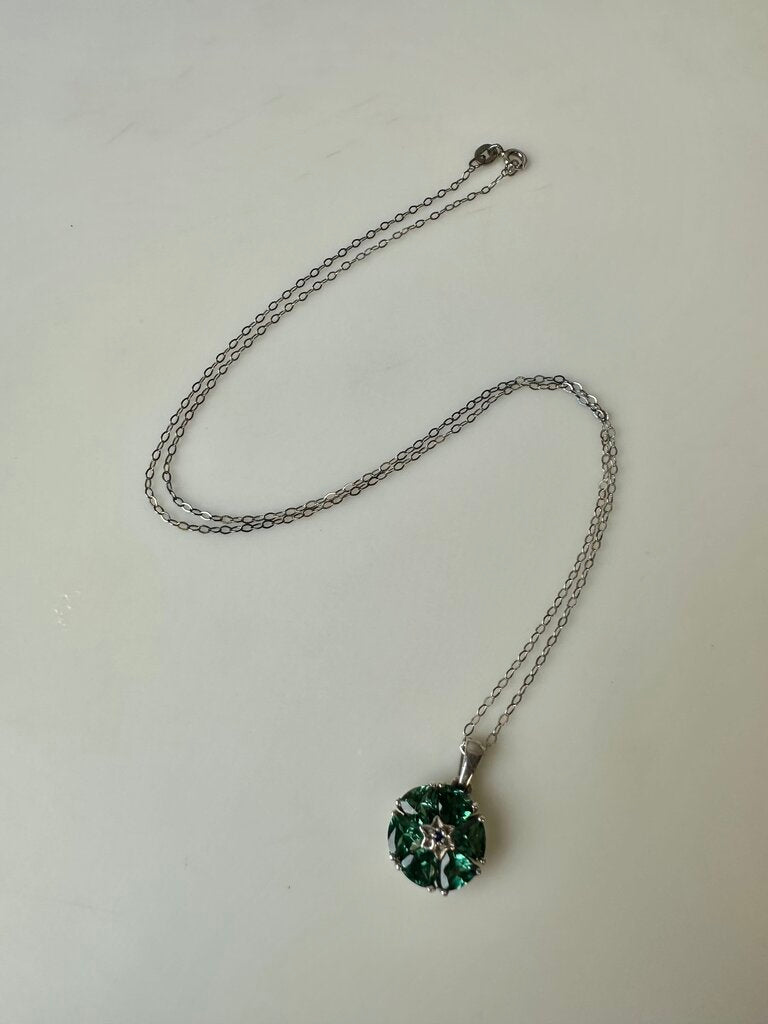 Sterling Green Tourmaline Flower Pendant on 20" Chain