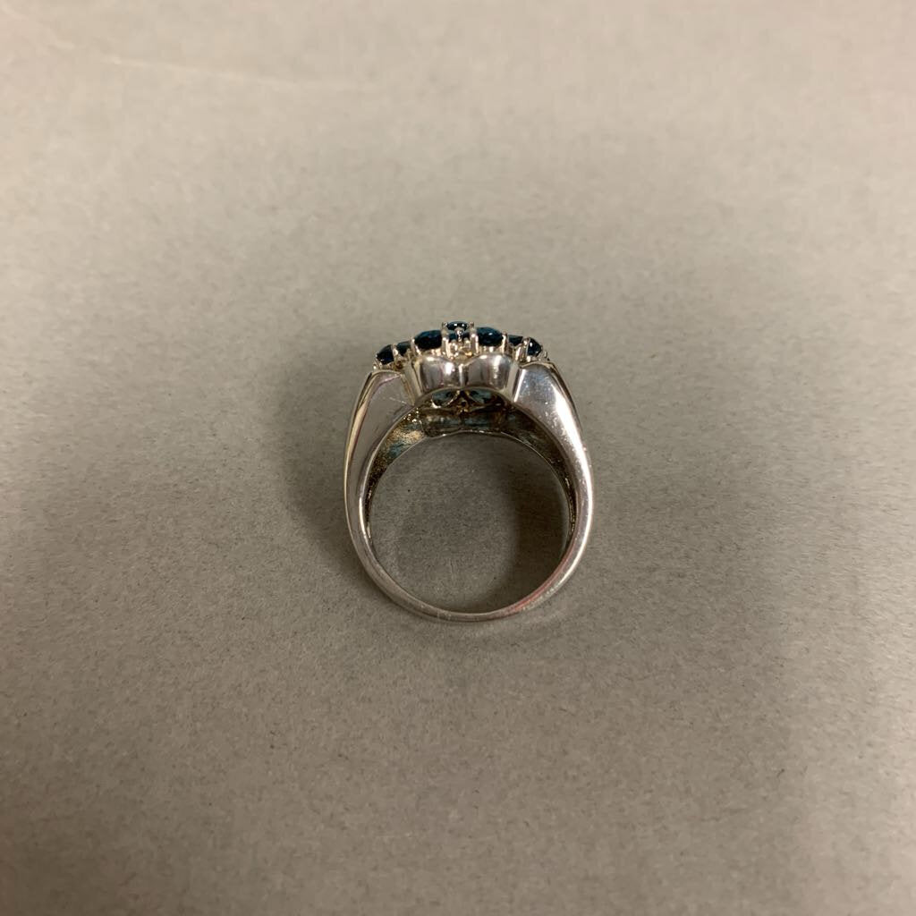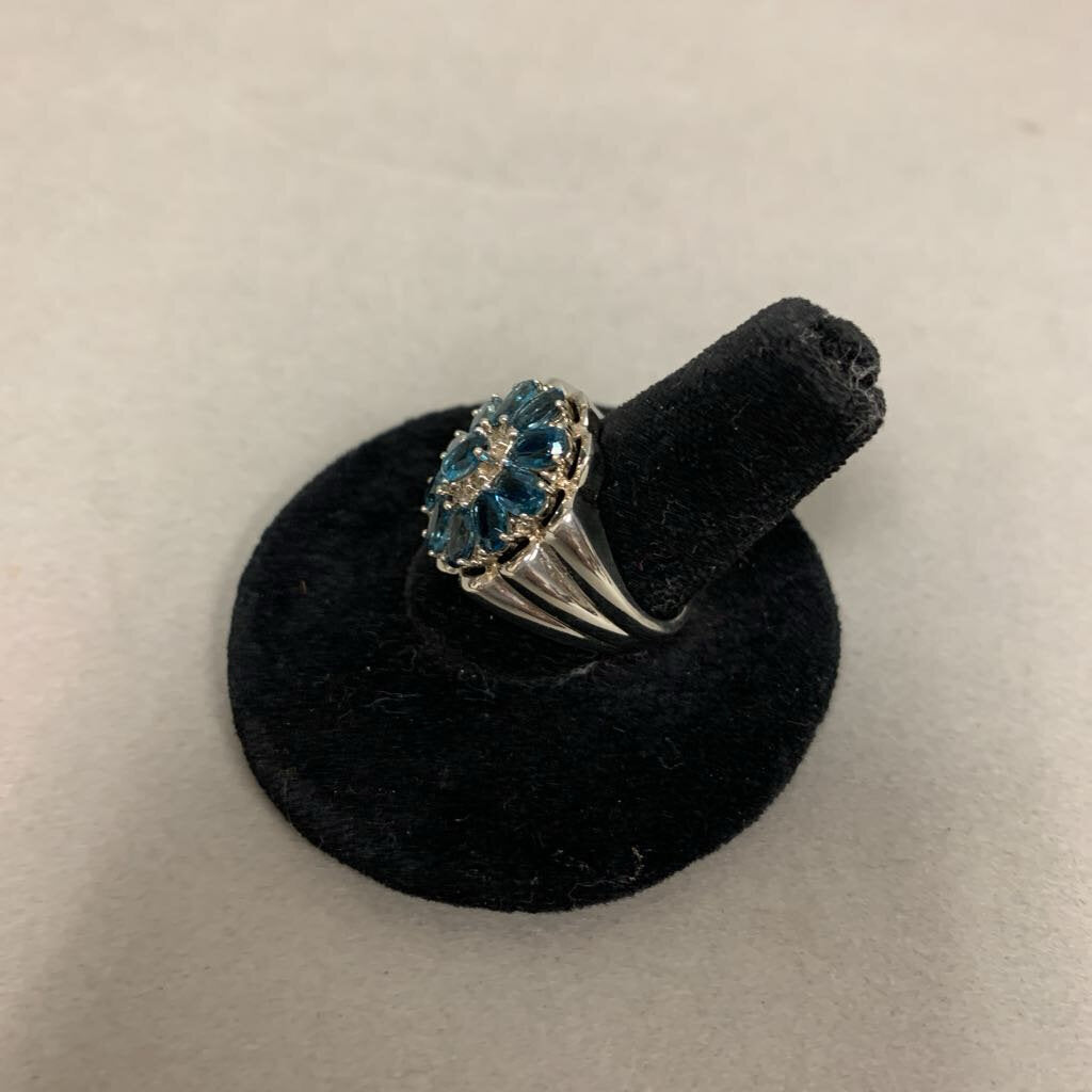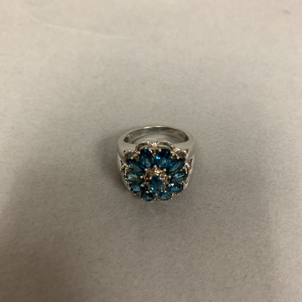 Sterling London Blue Topaz Flower Cluster Ring sz 6