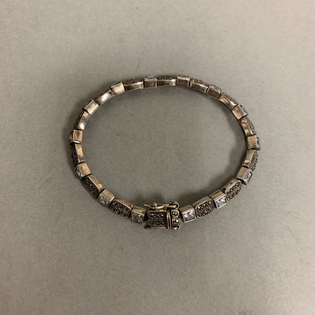 Sterling Marcasite Cubic Zirconia Link Bracelet (7.5")