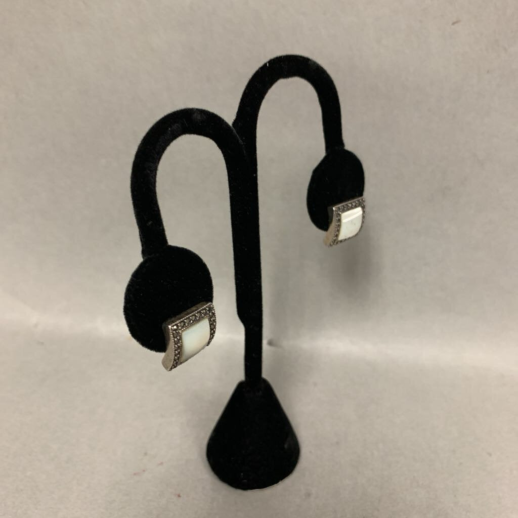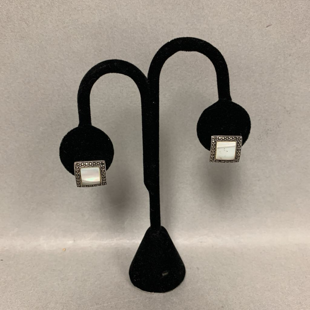 Sterling Marcasite Mother of Pearl Earrings (0.5")