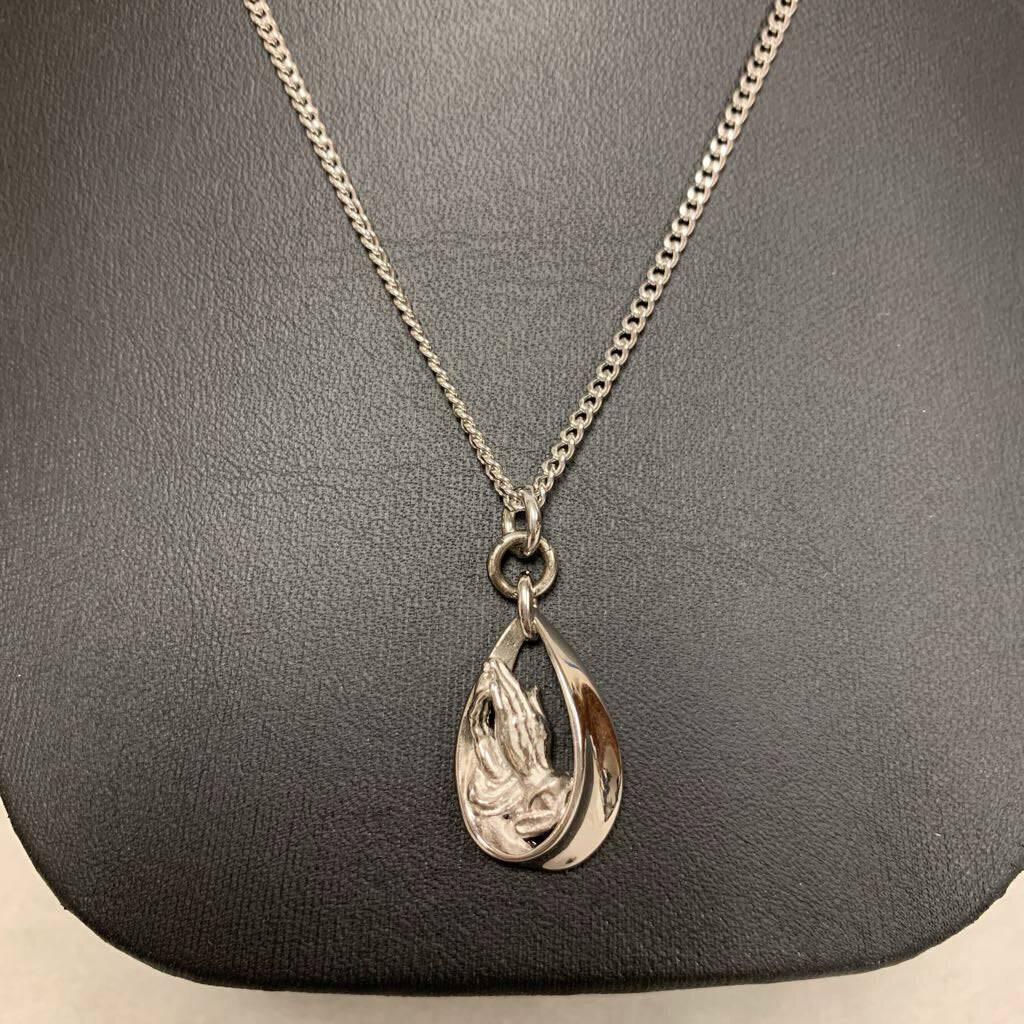 Sterling Praying Hands Pendant on 24" Chain
