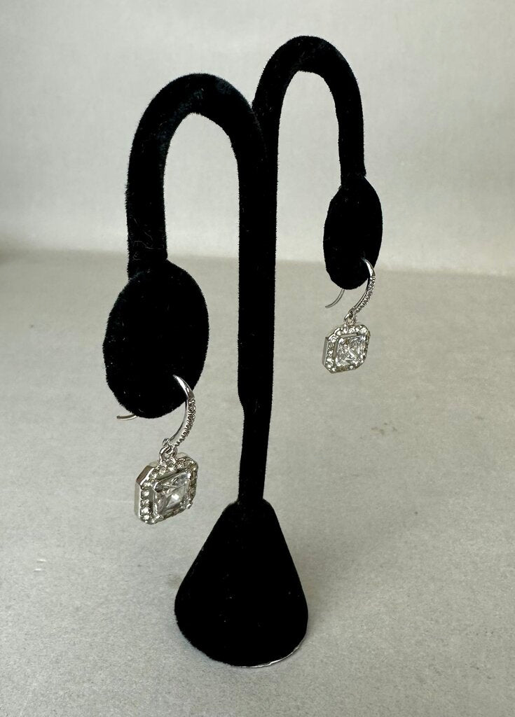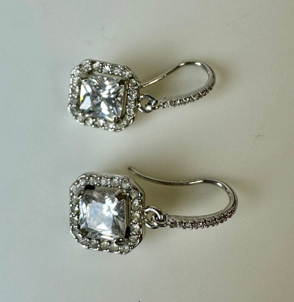 Sterling Princess Cut Halo Cubic Zirconia Earrings