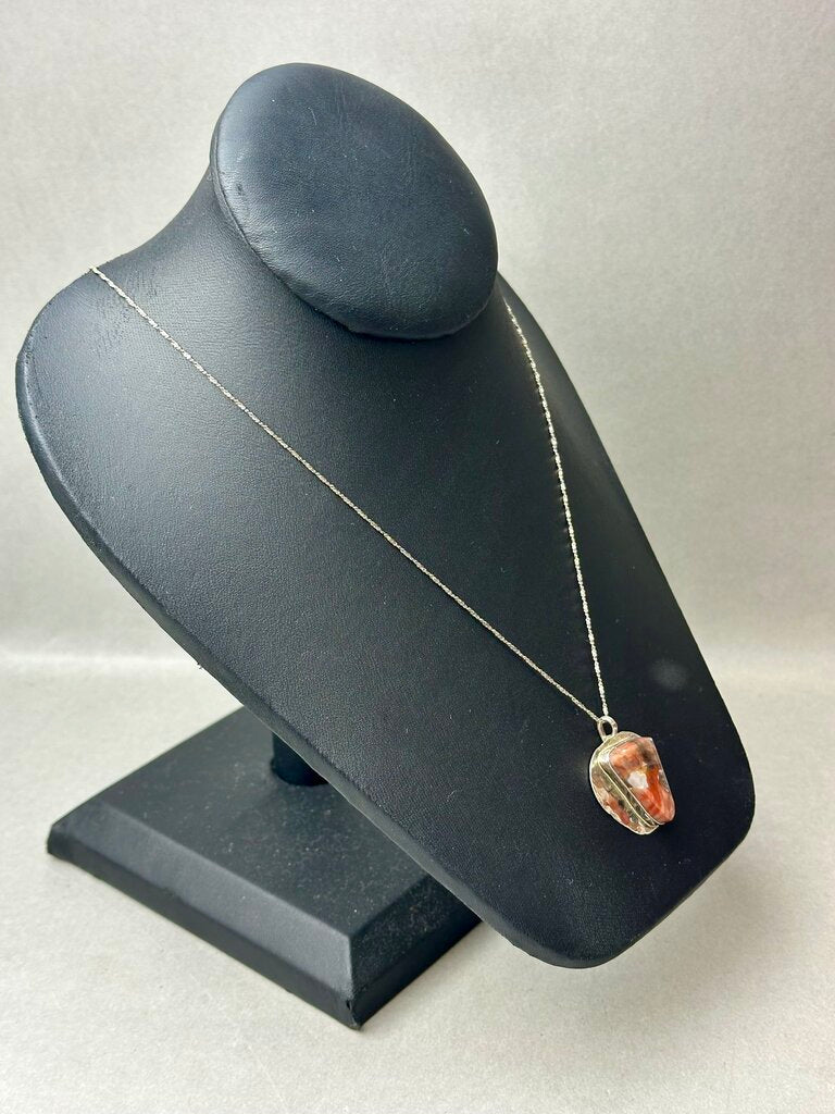 Sterling Red Crazy Lace Agate 1.25" Pendant on 19" Chain