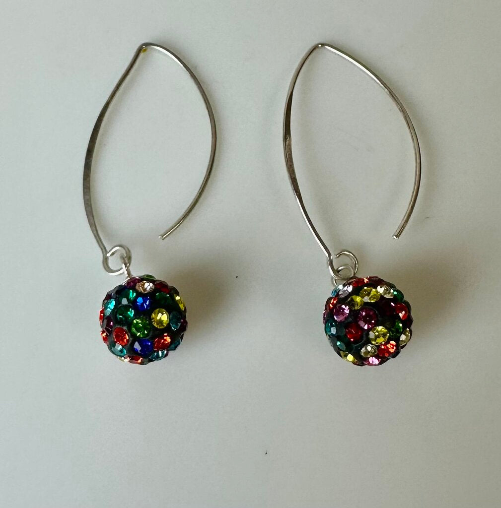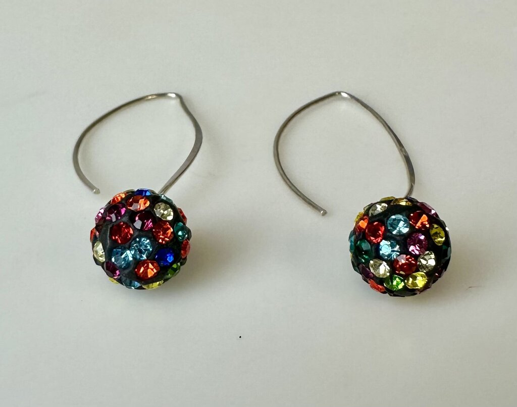 Sterling Swarovski Crystal Glitter Ball Earrings (1.75")