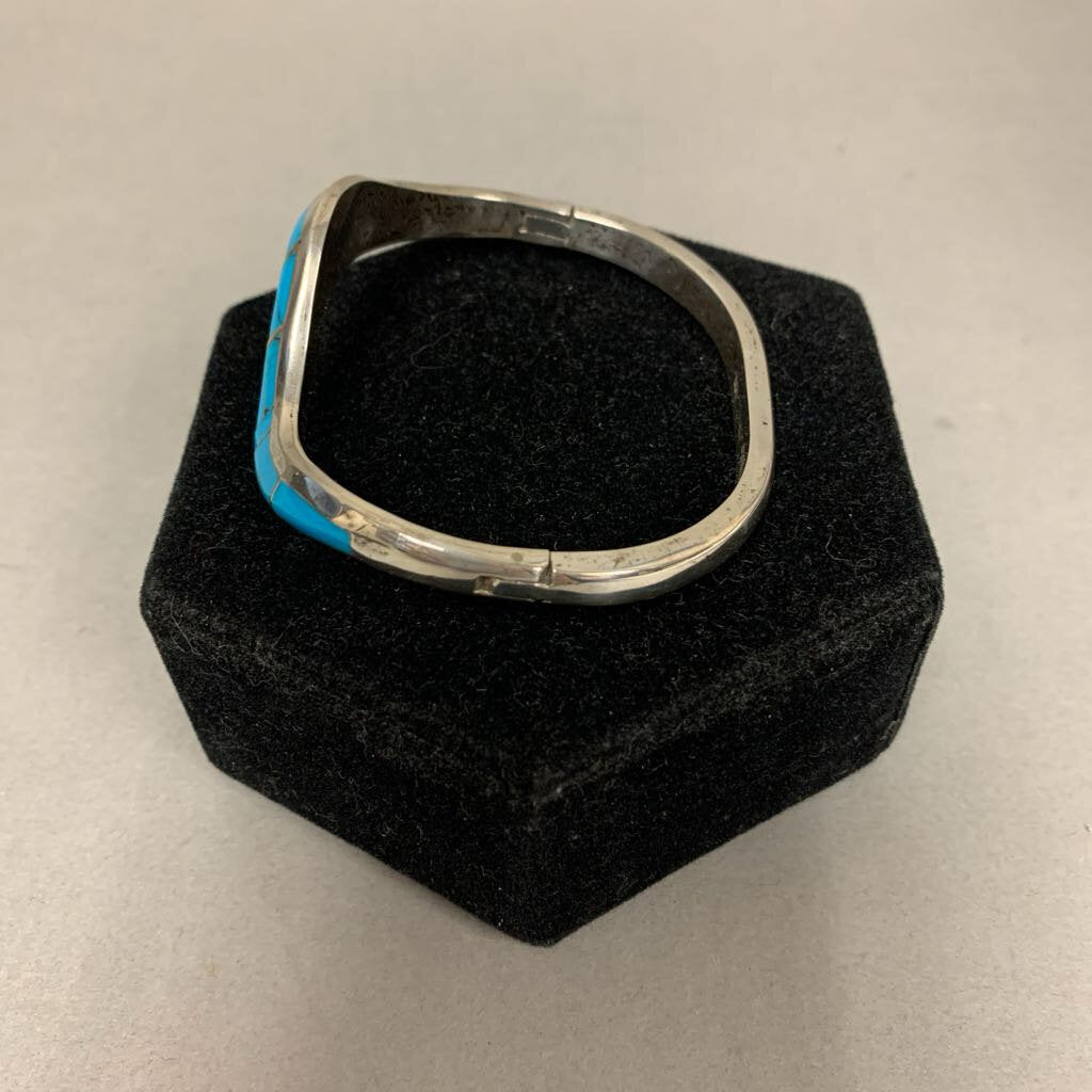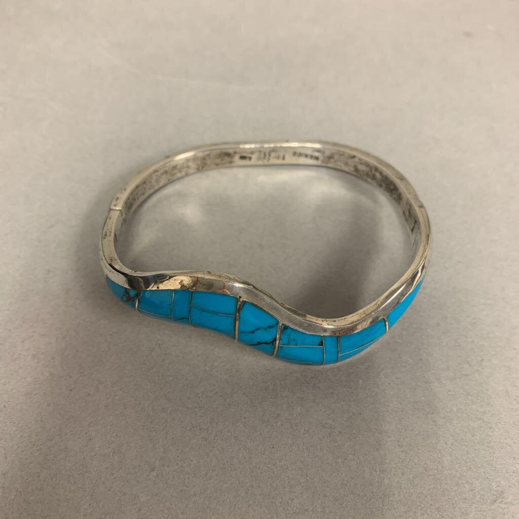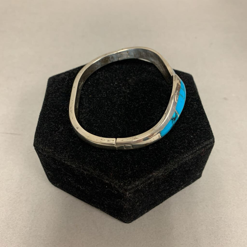 Sterling Turquoise Inlay Wave Hinged Bangle Bracelet (2.5" Inside Diameter)