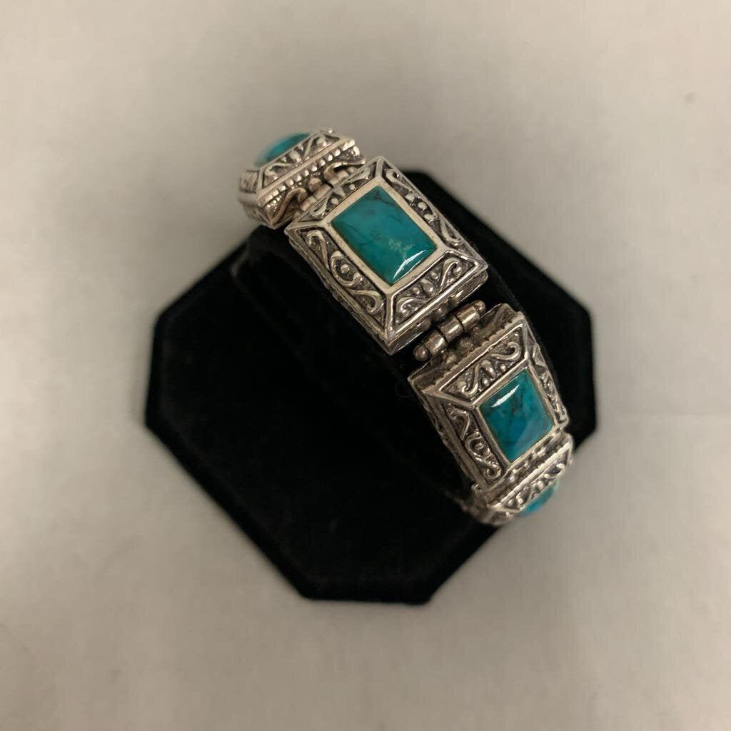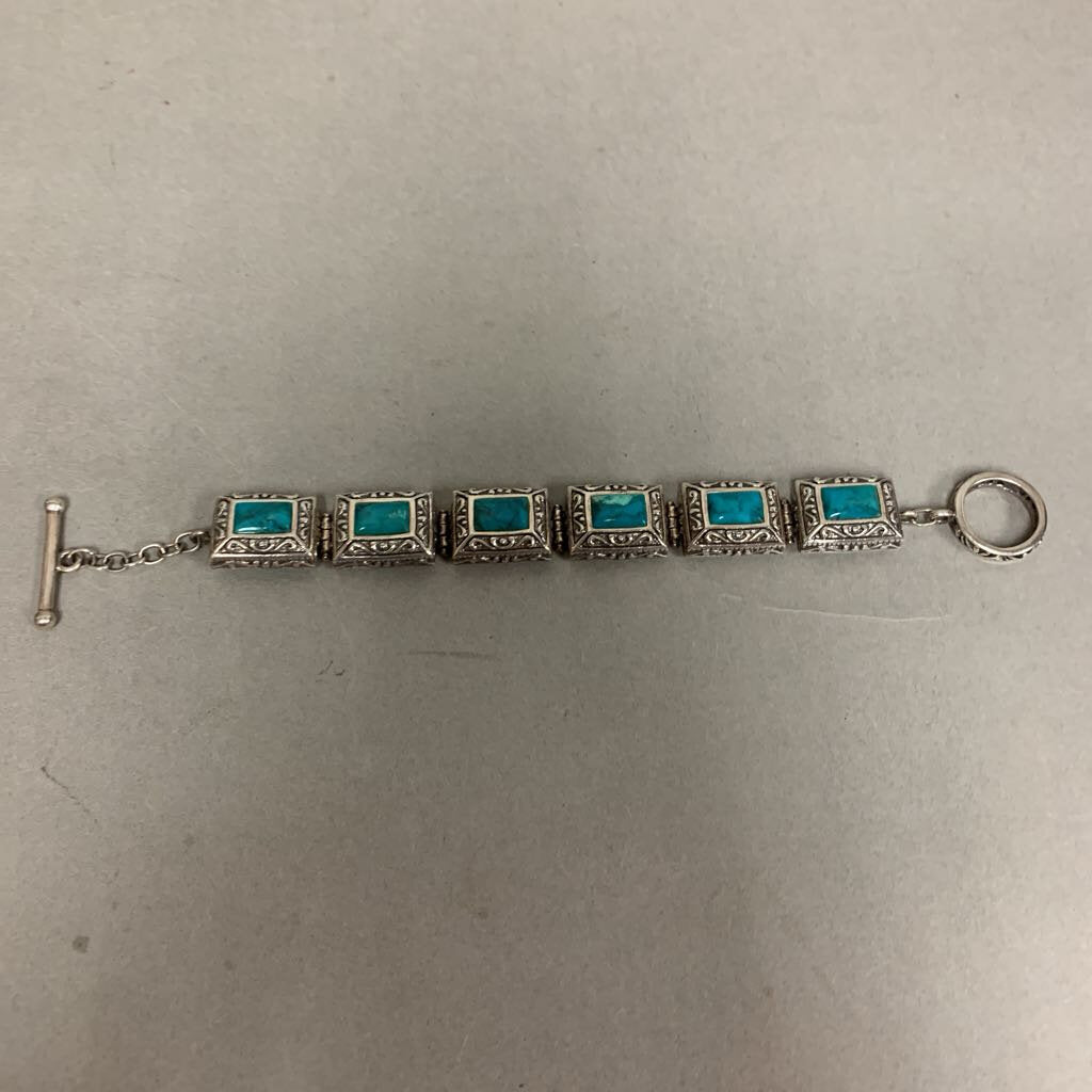 Sterling Turquoise Ornate Link Toggle Bracelet (7.5")