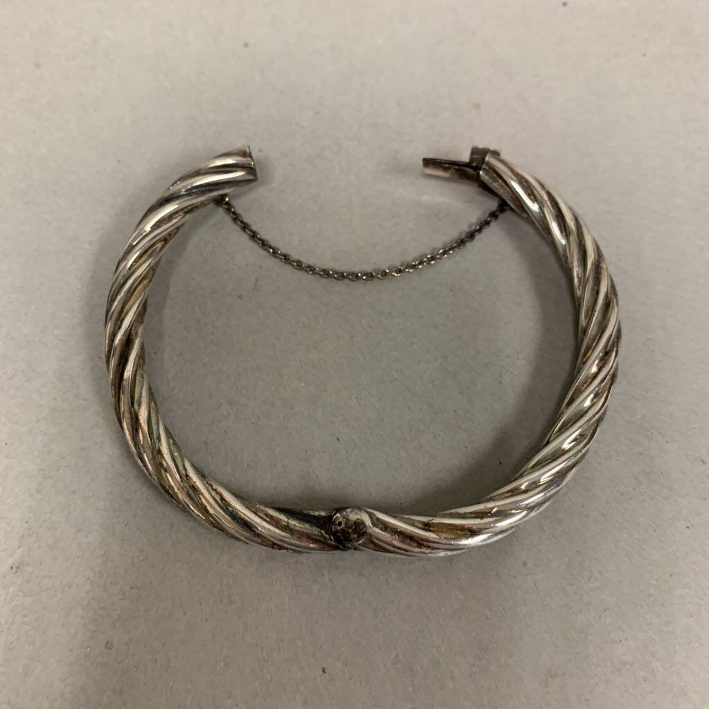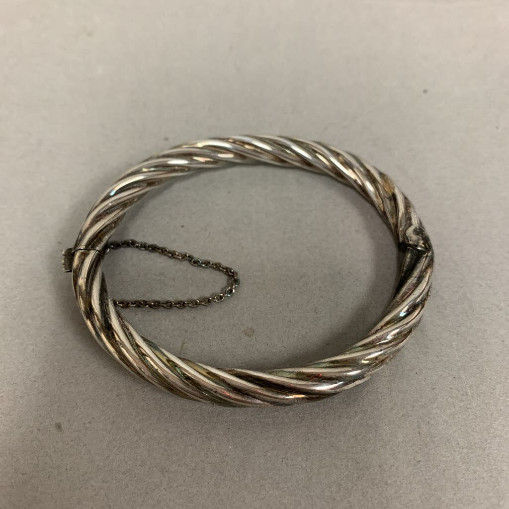 Sterling Twisted Hinged Bangle Bracelet w/ Safety Chain (2.5" inside diameter)