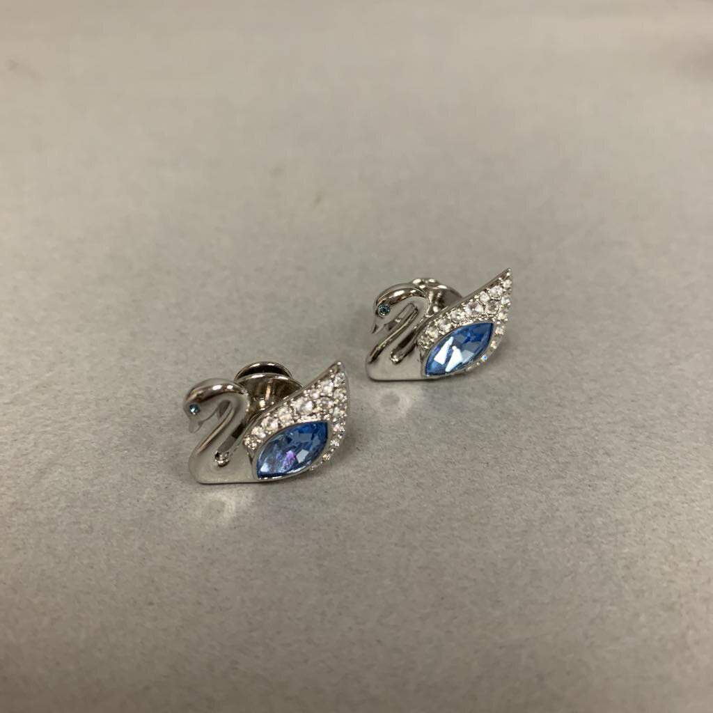 Swarovski Blue Crystal Swan Collar Pin Tie Tack Set of 2