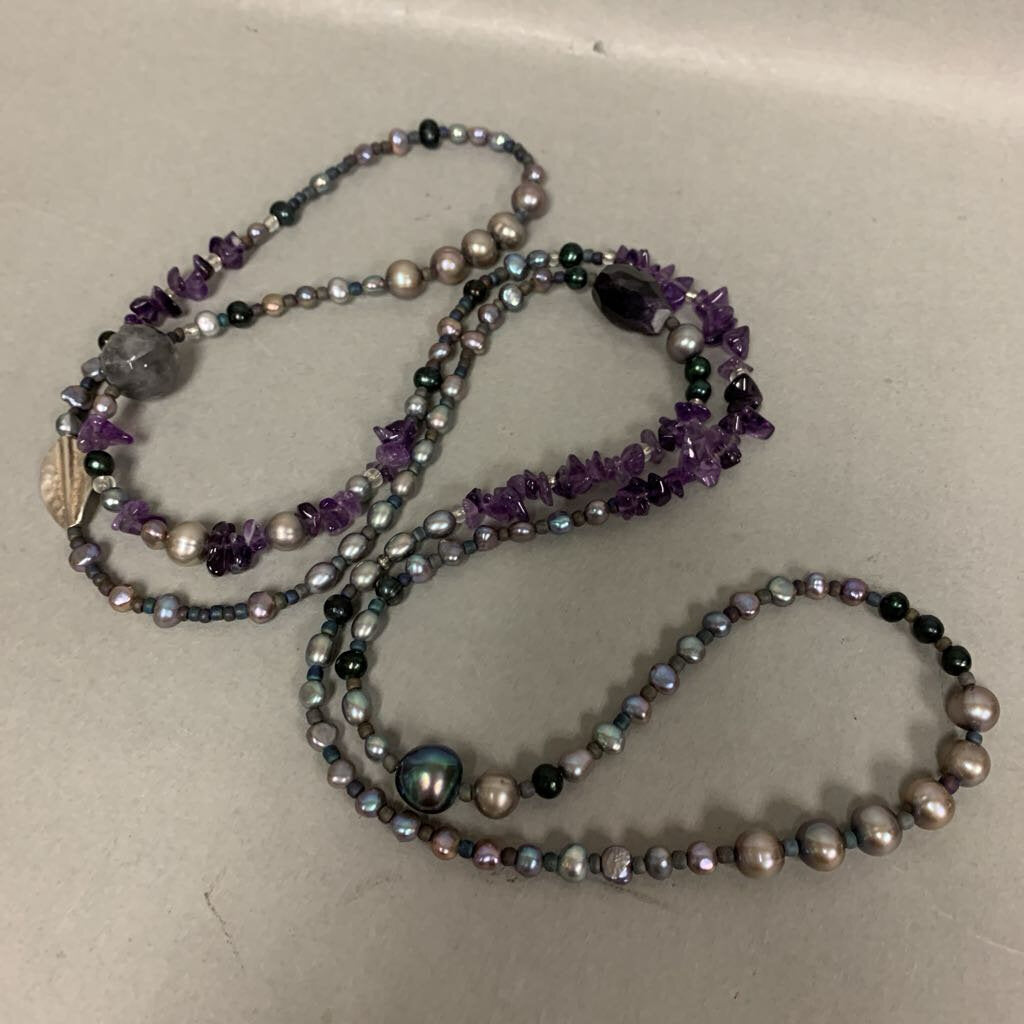 Tica Rosa Gray Pearl Amethyst Metallic Beaded Necklace (50")