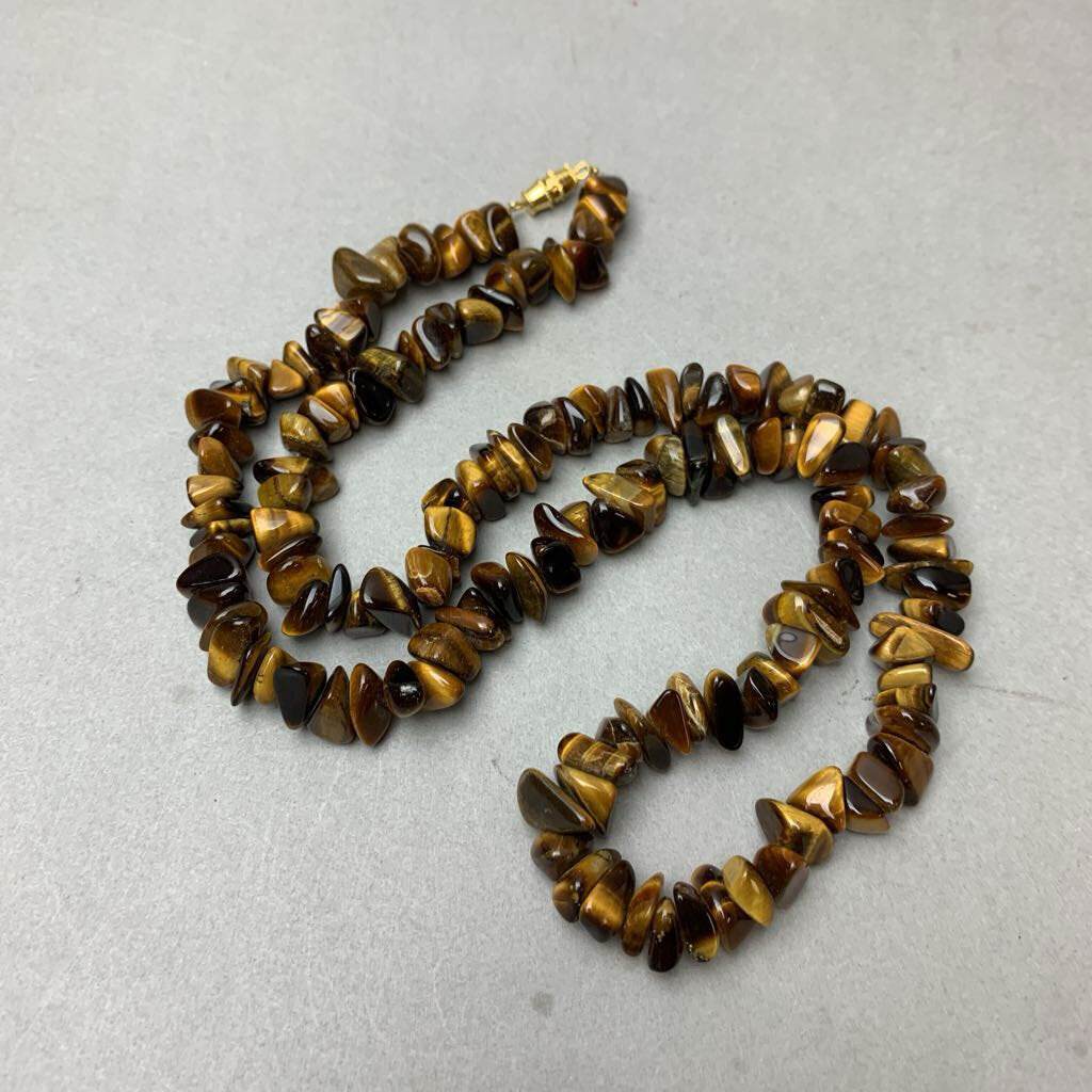 Tiger's Eye Chip Beaded Necklace w/ Barrel Clasp (24")