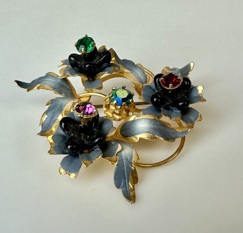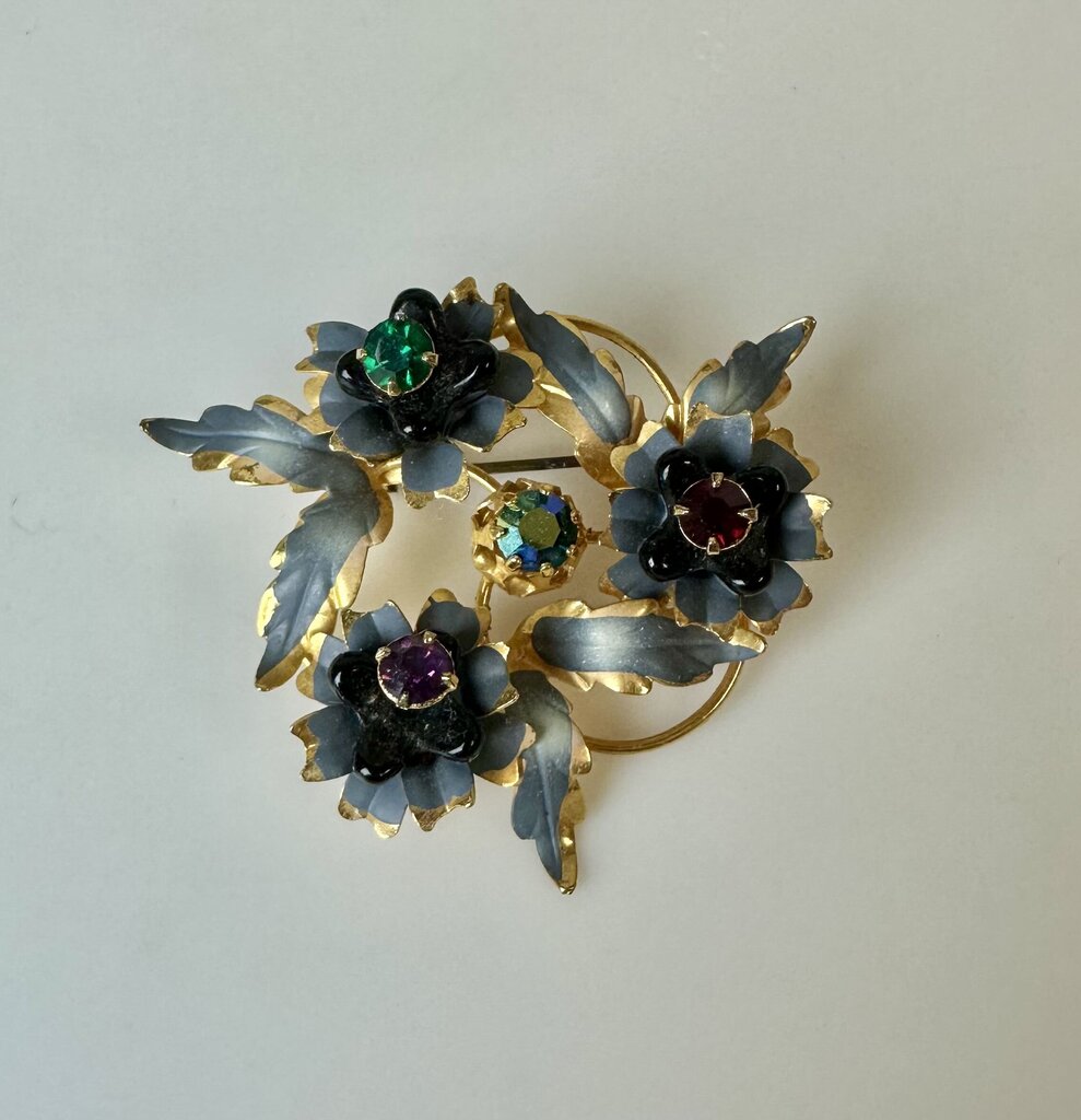 Vintage Austrian Goldtone Glass Flower Rhinestone Brooch Pin (2")