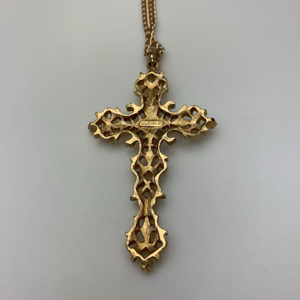 Vintage Avon Goldtone Red Gem Cross Pendant on 24" Chain