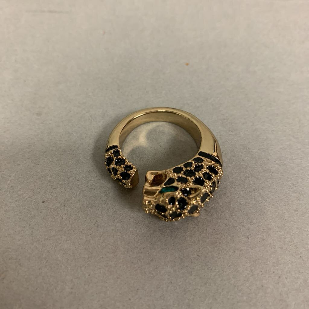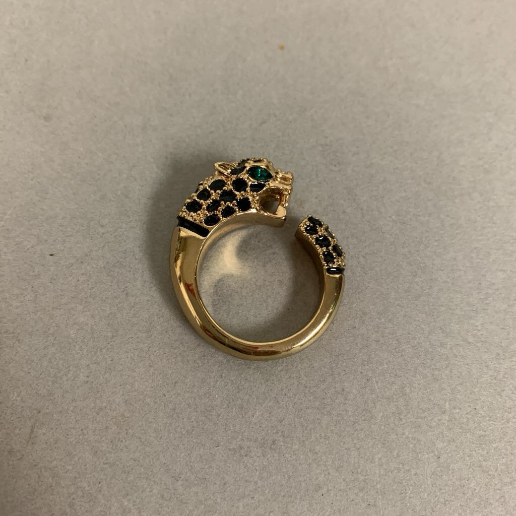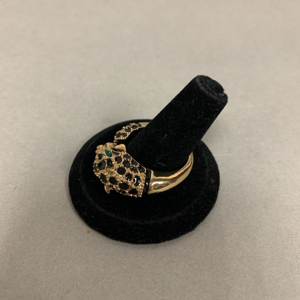 Vintage Avon Goldtone Rhinestone Enamel Leopard Ring sz 10