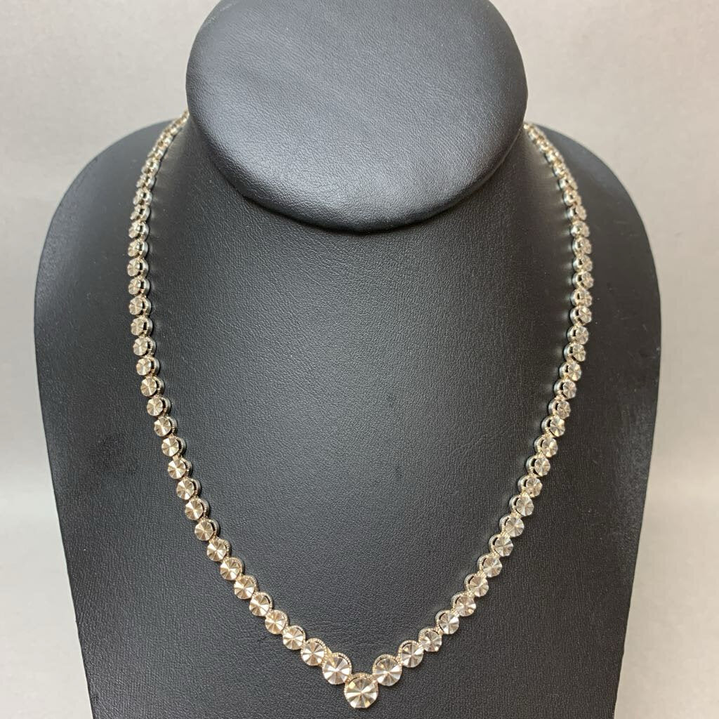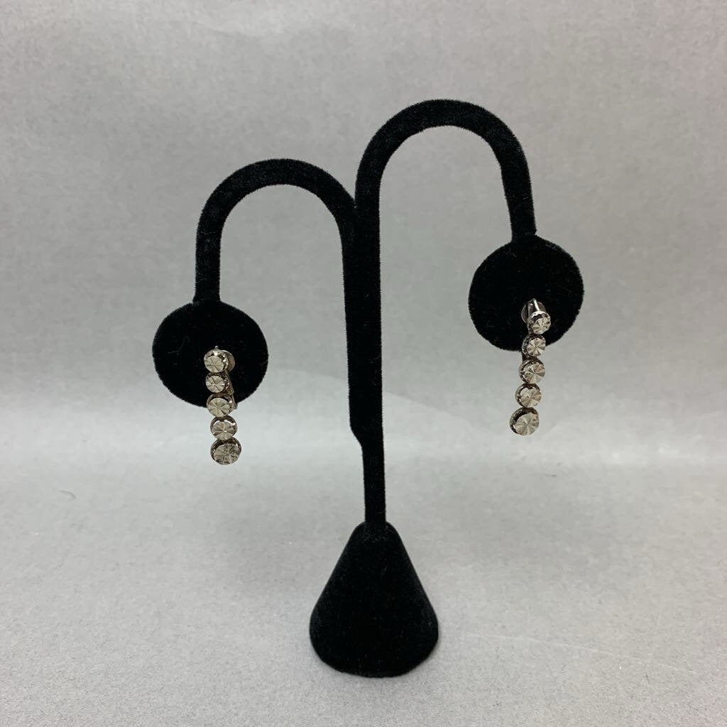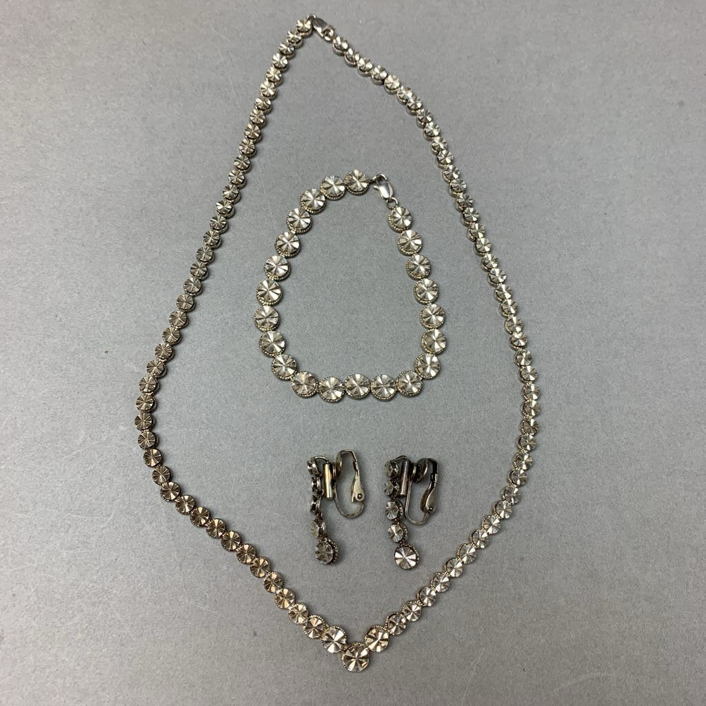 Vintage Beverly Hills Sterling V-Necklace Bracelet & Clip Earrings Set Signed (17", 7")