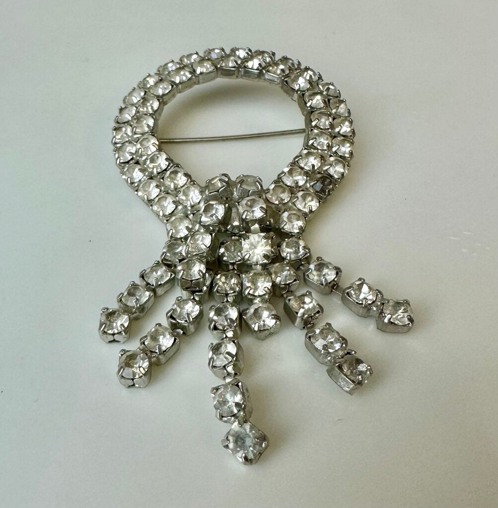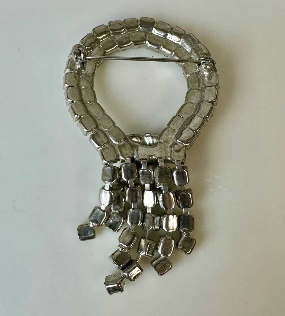 Vintage Clear Rhinestone Waterfall Brooch Pin (3")