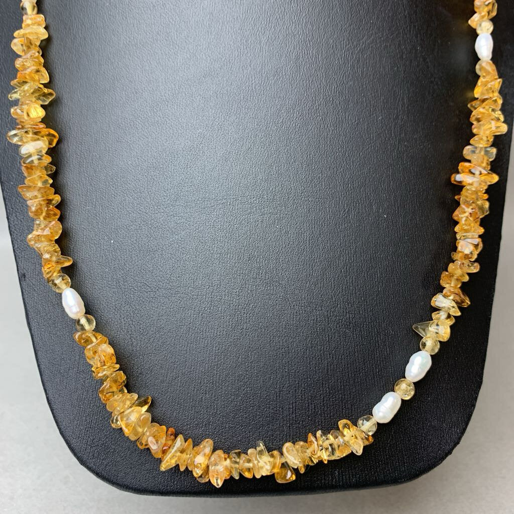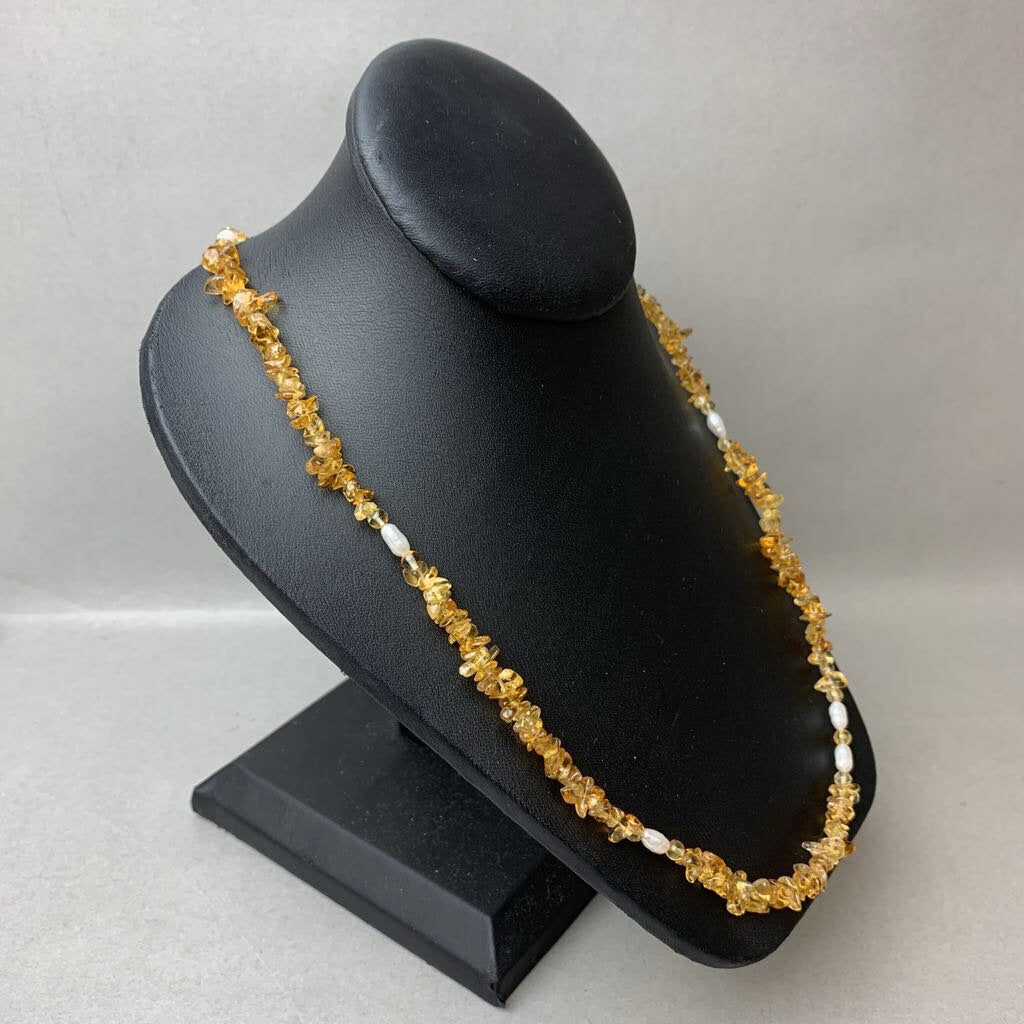 Vintage Deena Alexandra Cottini Citrine Chip Freshwater Pearl Necklace (30")