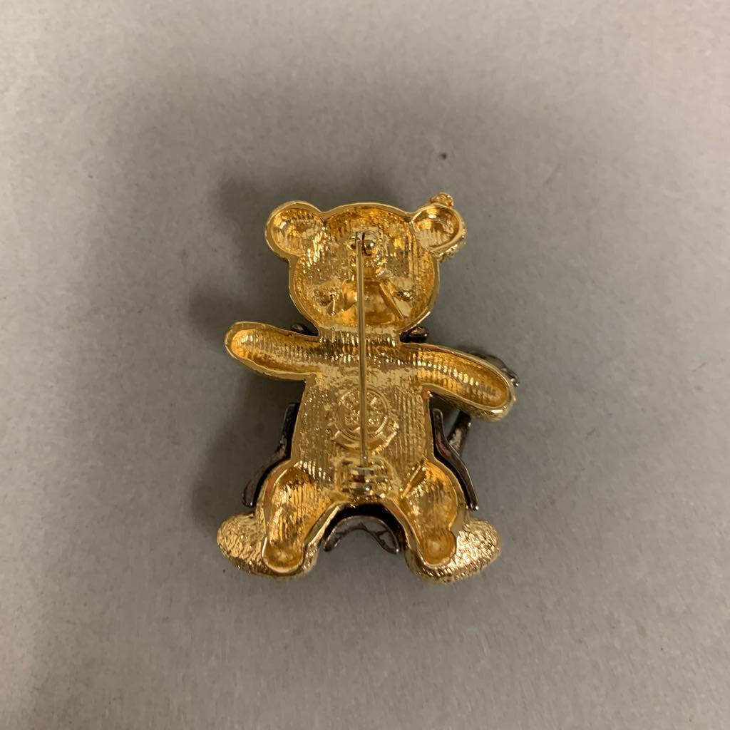 Vintage Edgar Berebi Goldtone Rhinestone Enamel Teddy Bear w/ Hammer Brooch Pin (2")