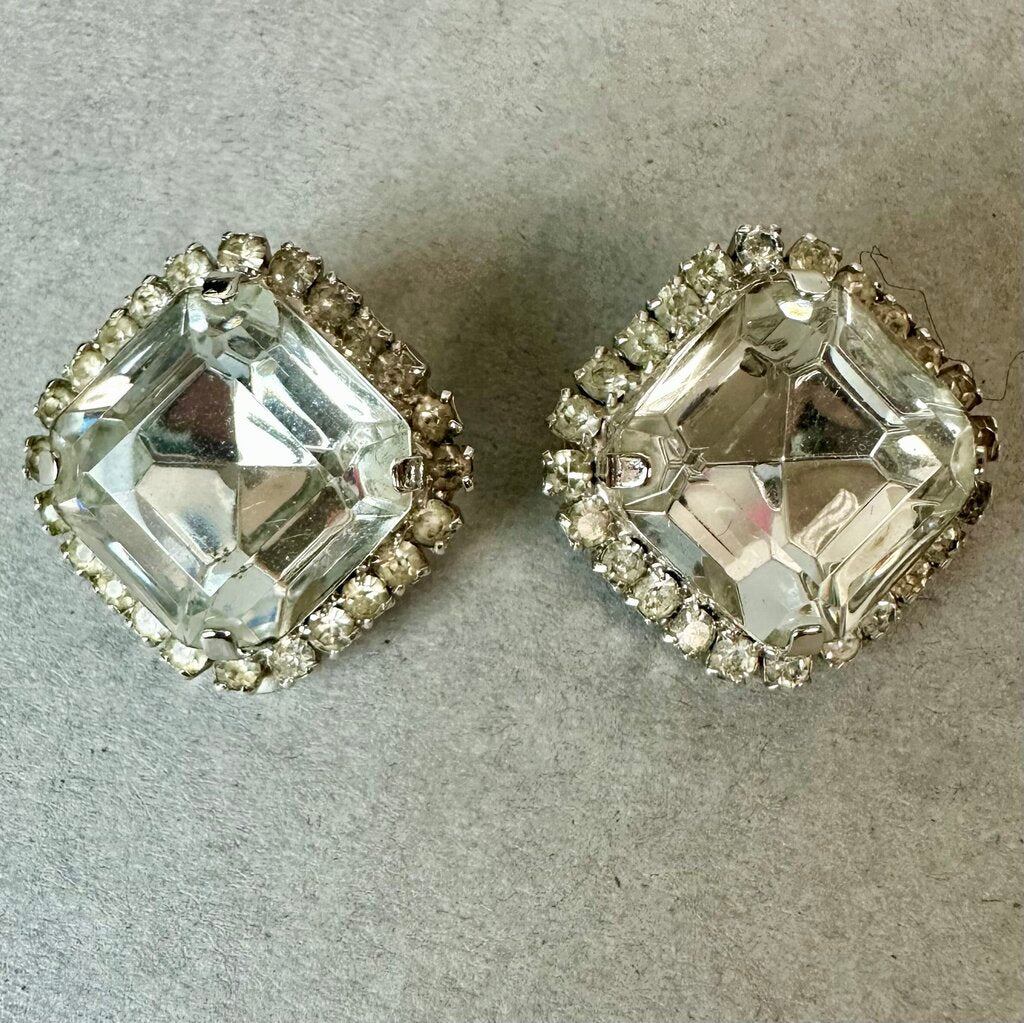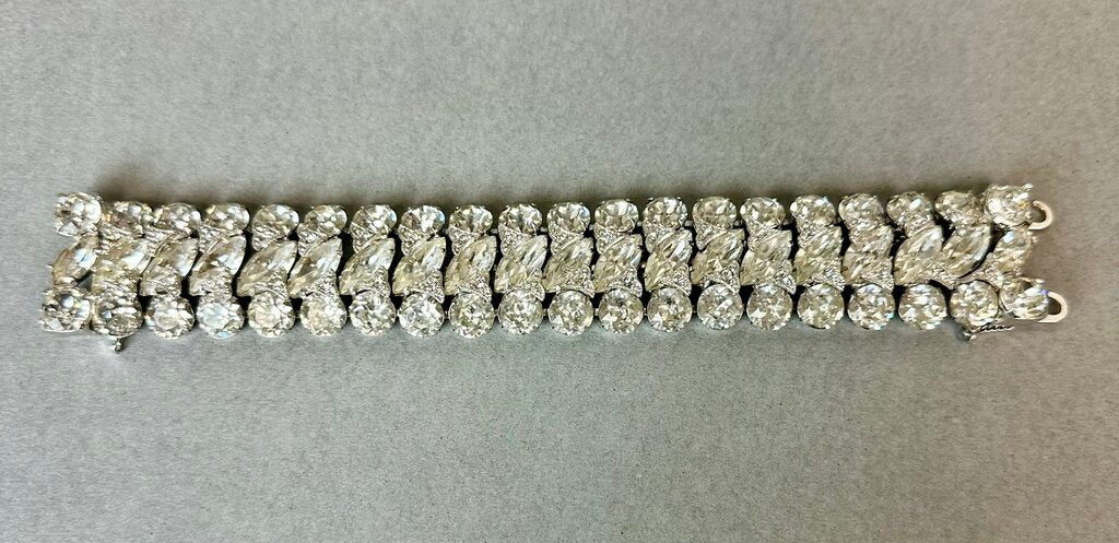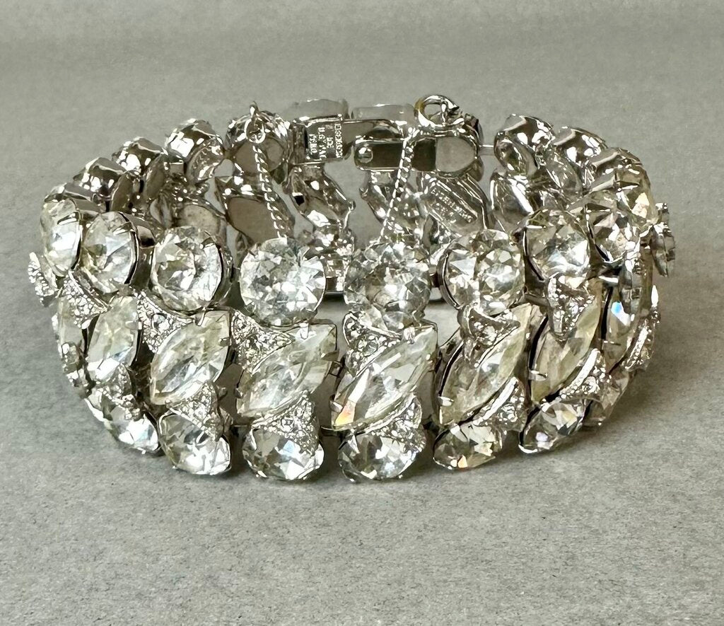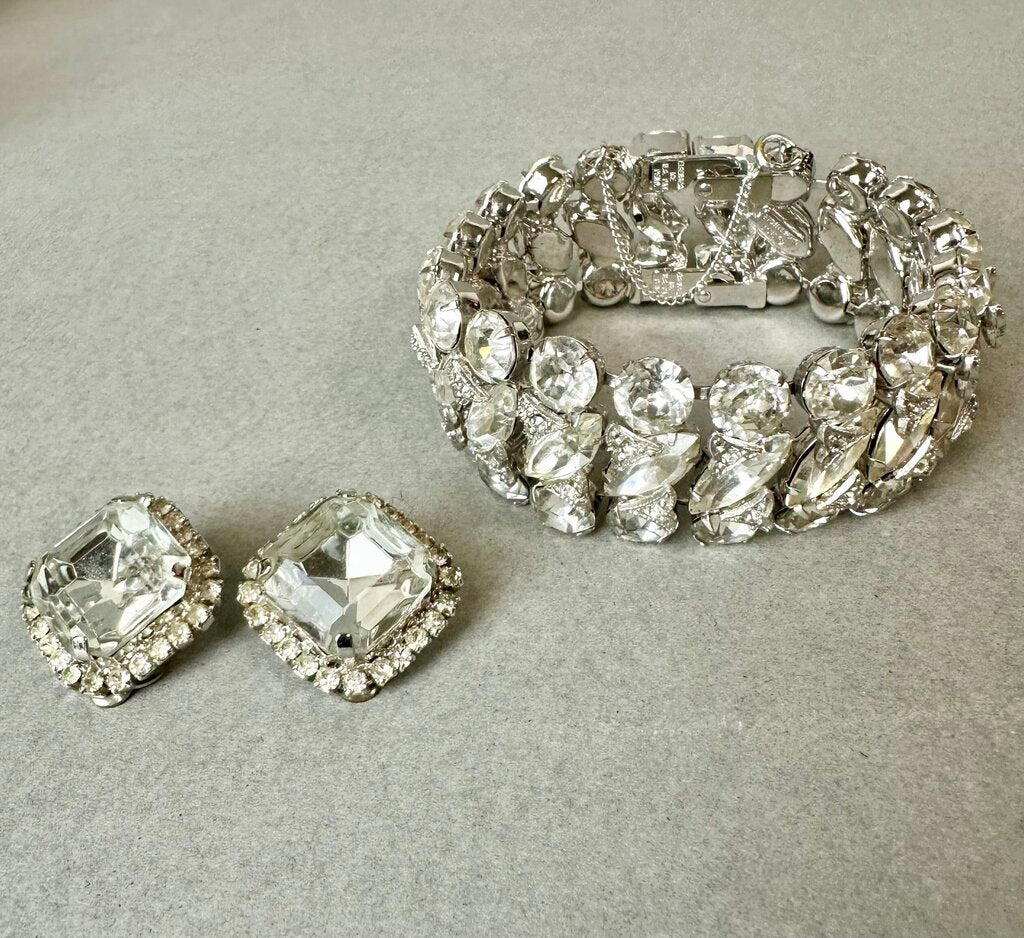 Vintage Eisenberg Ice Clear Rhinestone Bling Statement 7.25" Bracelet & Clip Earrings Set
