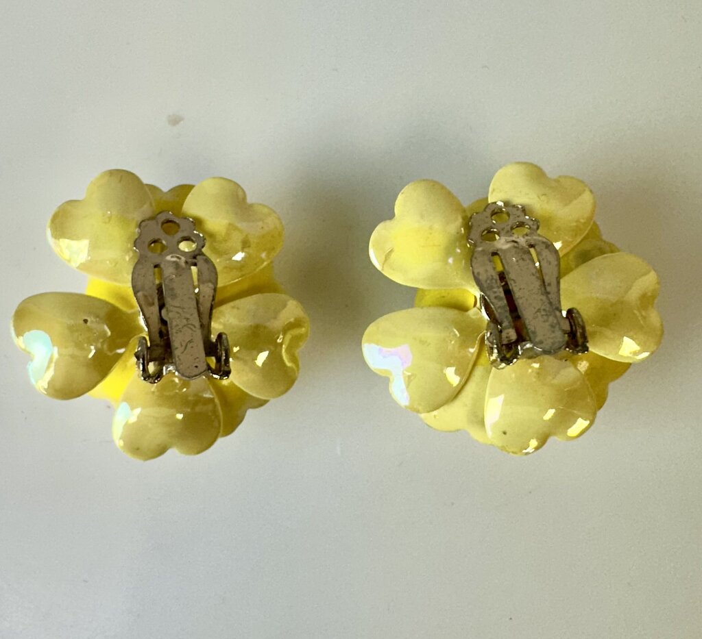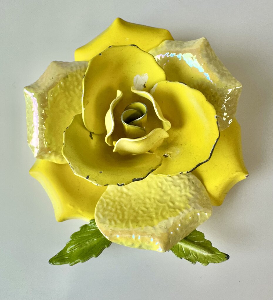 Vintage Enameled Metal Yellow Rose Brooch Pin & Clip Earrings Set (3", 1")
