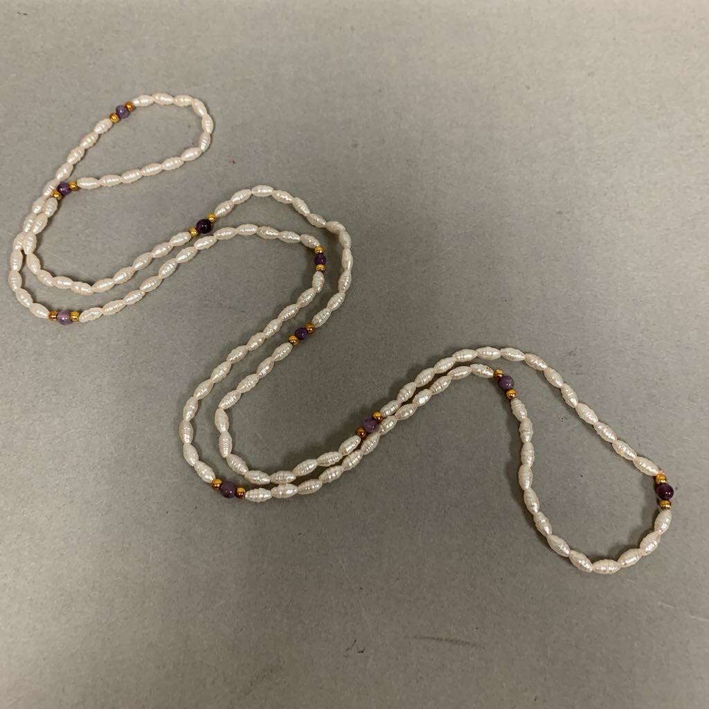 Vintage Freshwater Pearl Amethyst Gold Beaded Necklace (34")