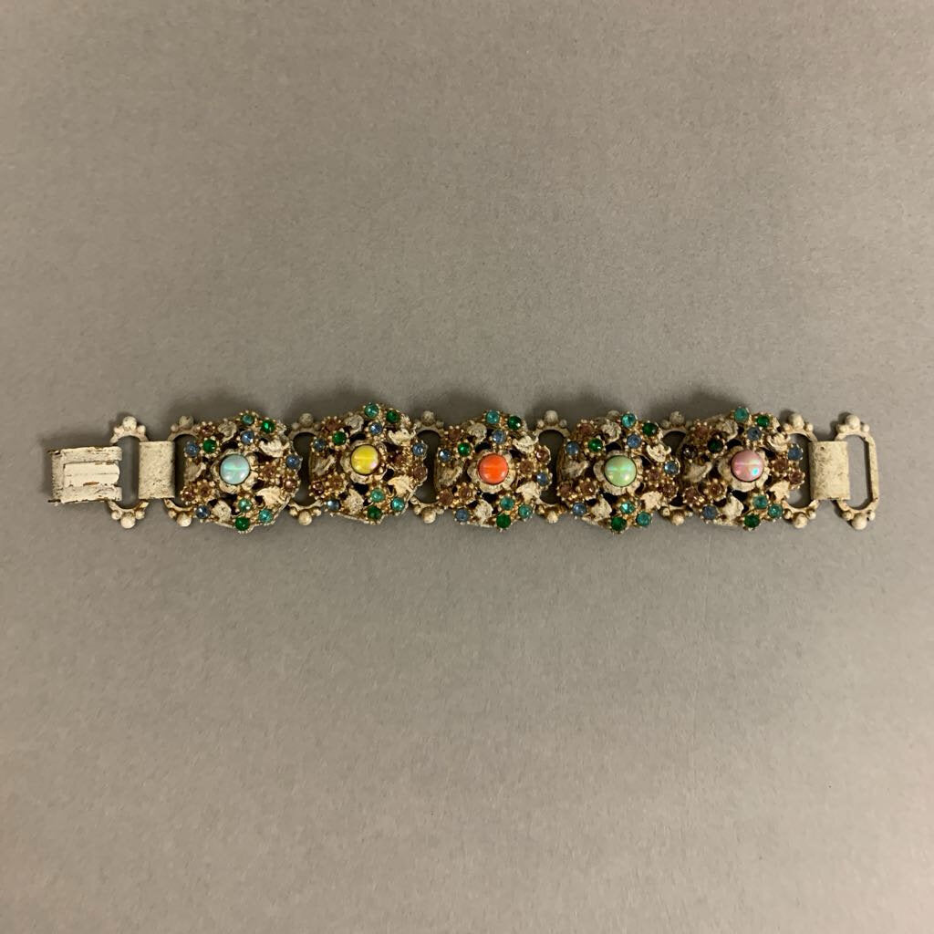 Vintage Goldtone Enamel Crystal Domed Link Statement Bracelet (7.25")