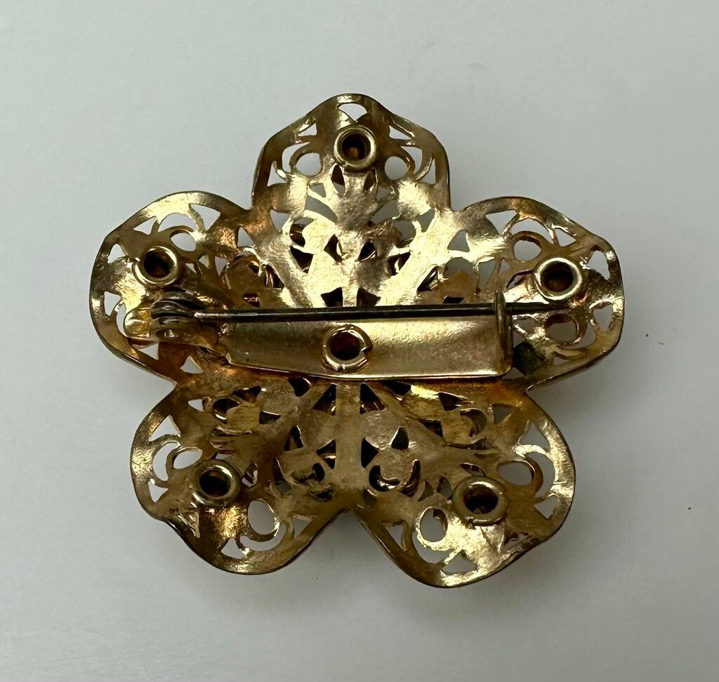 Vintage Goldtone Filigree Flower Purple Paste Stone Brooch Pin (1.5")