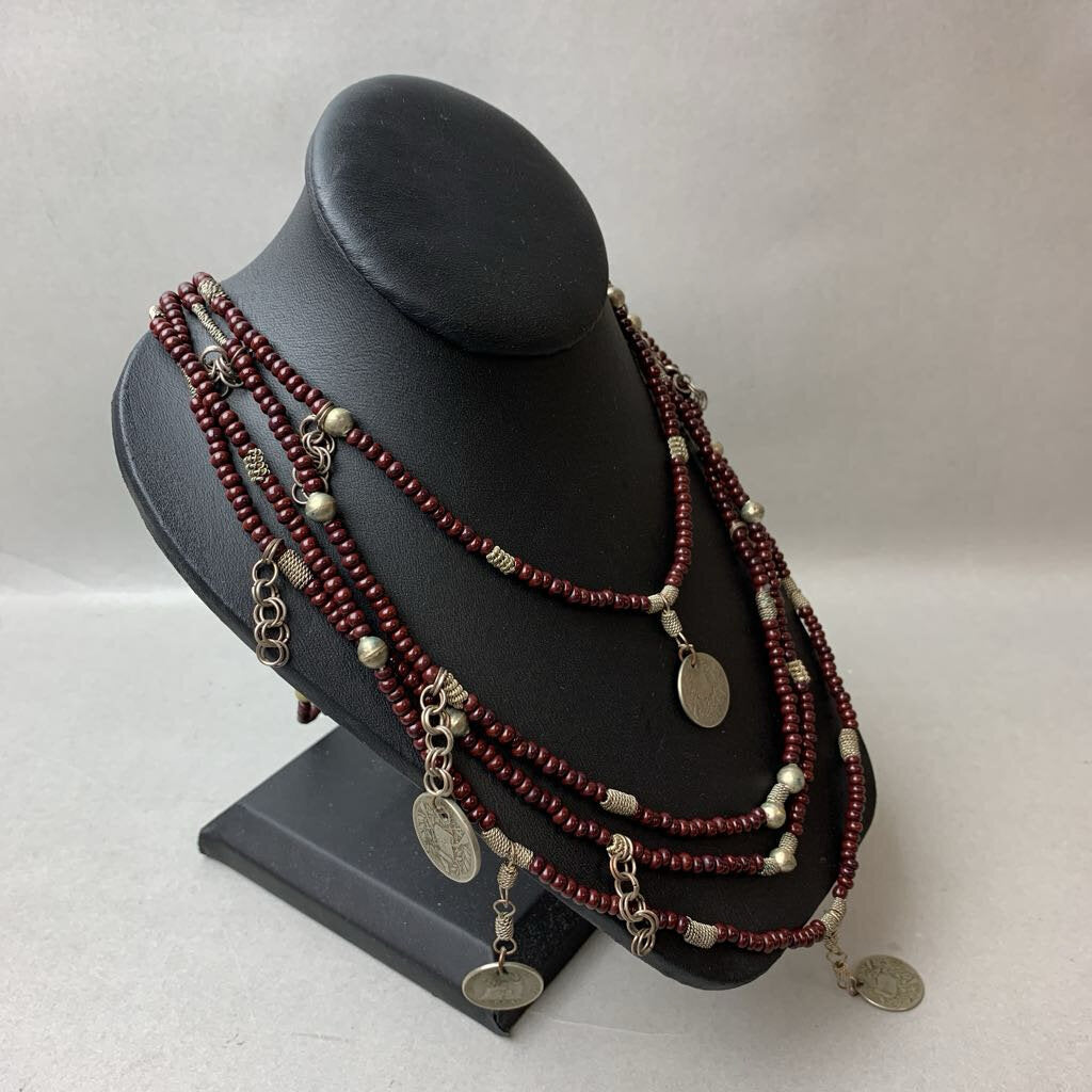Vintage Guatemalan Real Coin Beaded Layered Necklace (34")