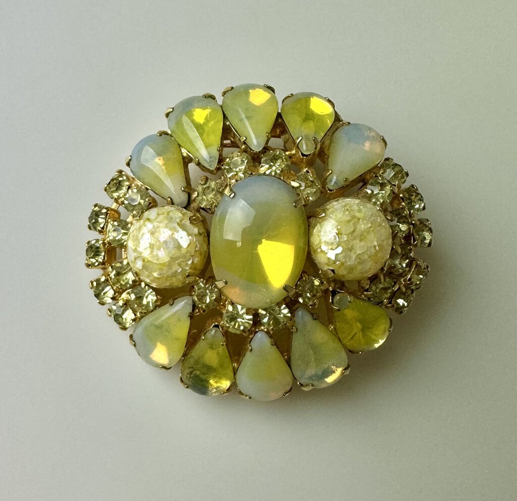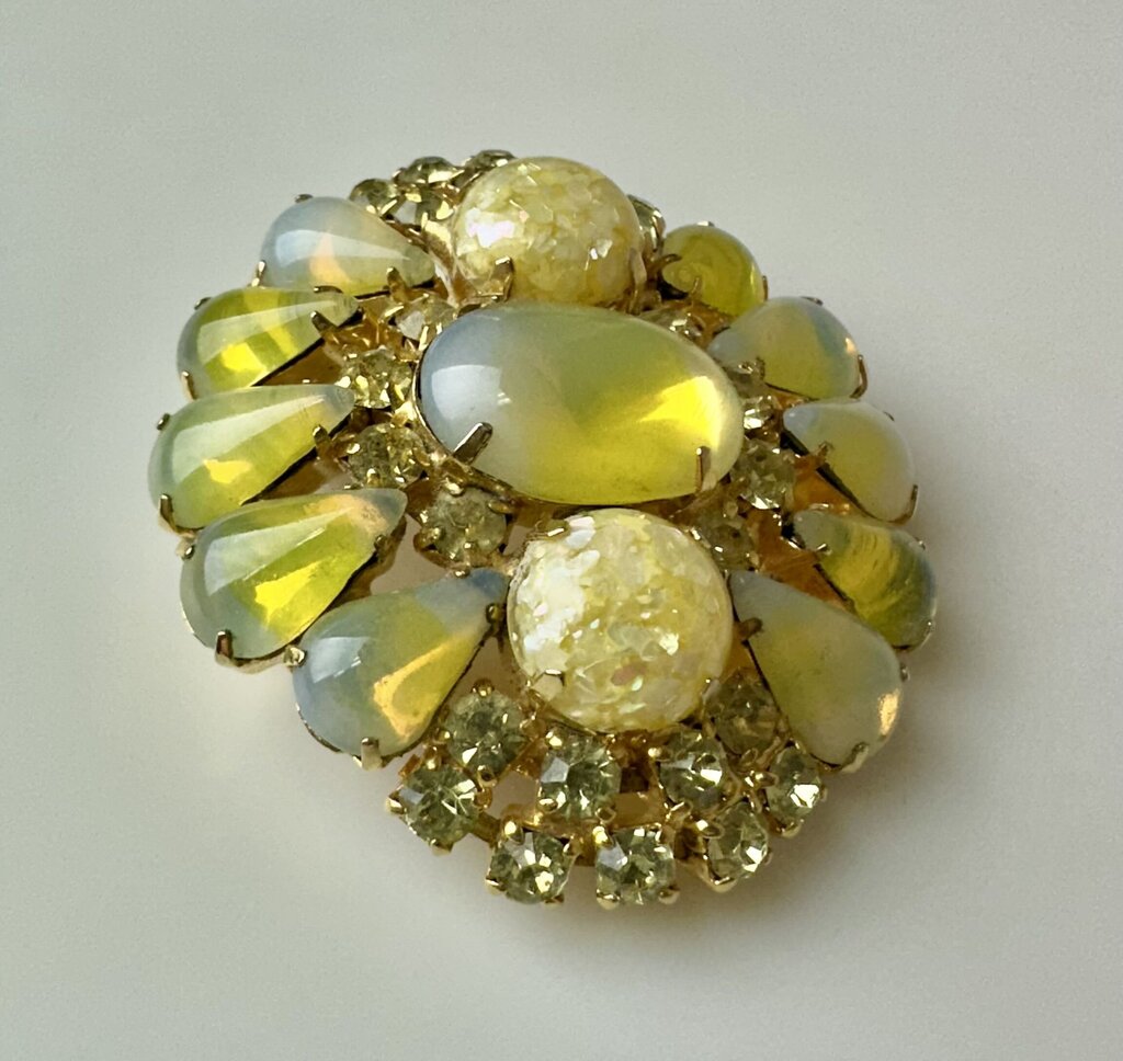 Vintage Juliana Easter Egg Glass Cabochon Rhinestone Brooch Pin (2")