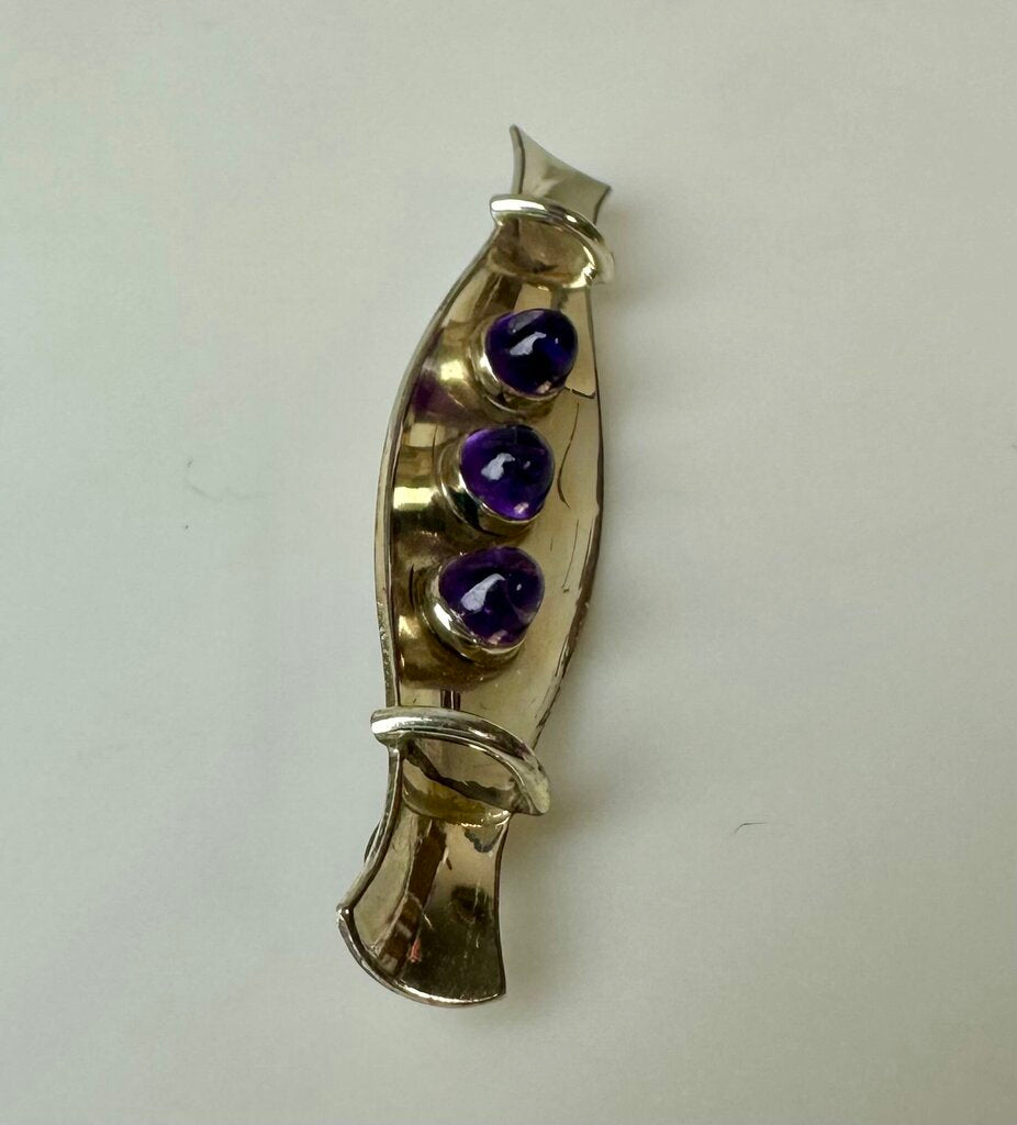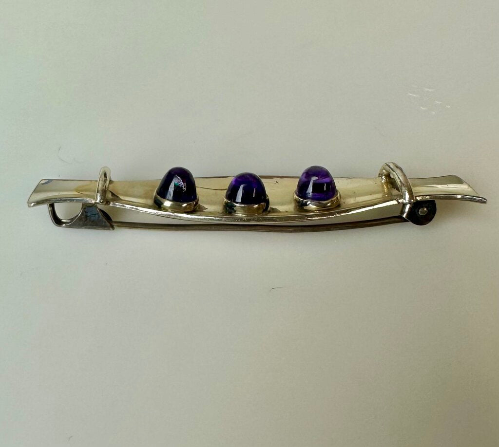 Vintage Kultaseppa Salovaara Finland Modernist Sterling Amethyst Brooch Pin (2.25")
