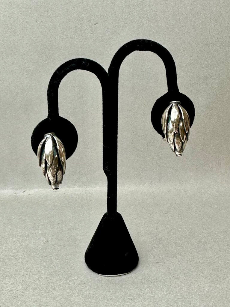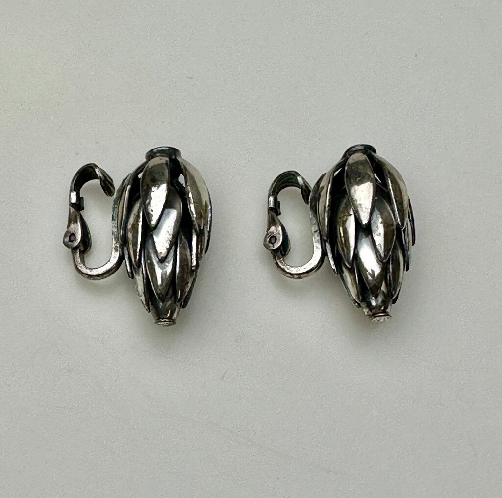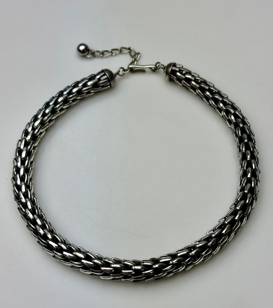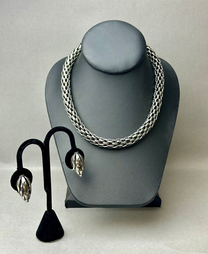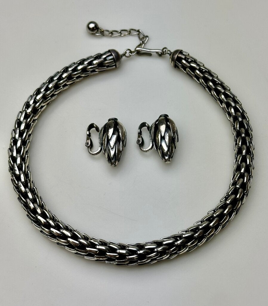 Vintage MCM Napier Signed Woven Silvertone Wheat Chain 17" Necklace & 1" Clip Earrings Set