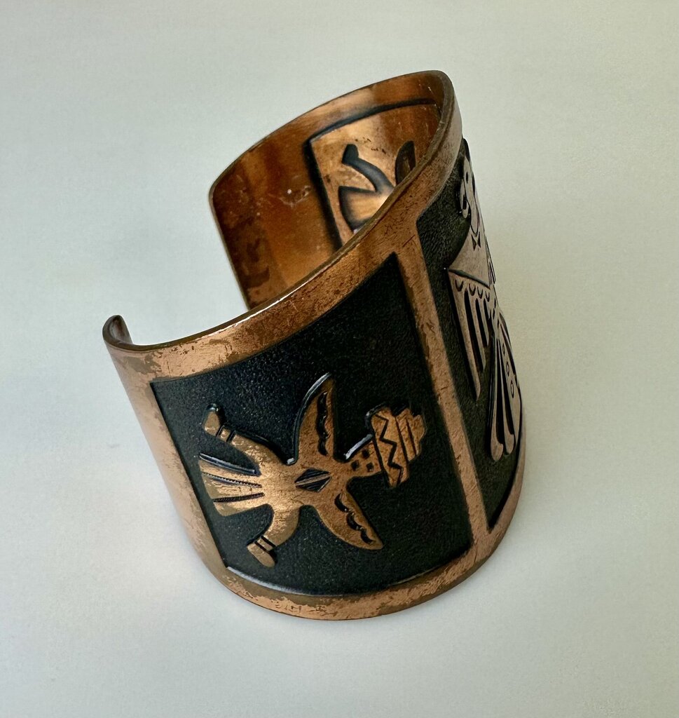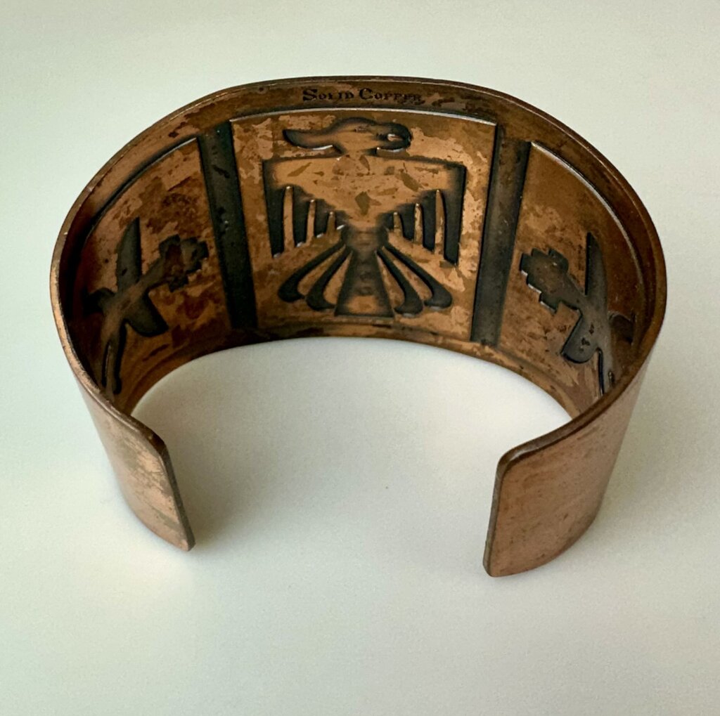 Vintage Midcentury Copper Thunderbird Wide Cuff Bracelet (2.5" inside diameter)