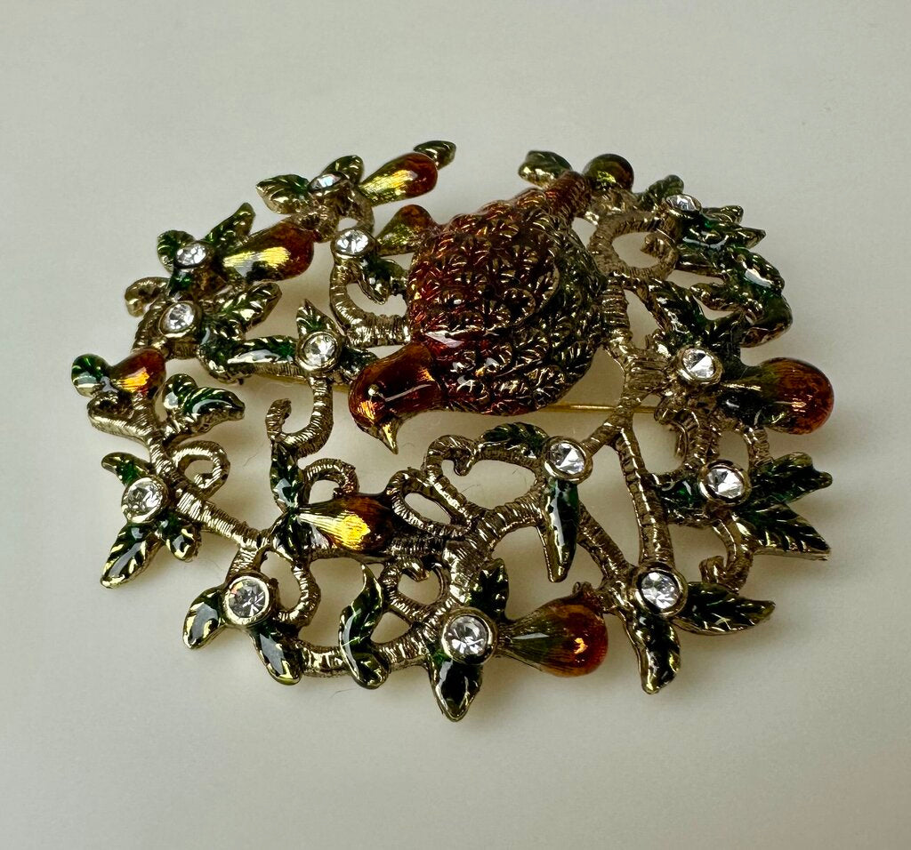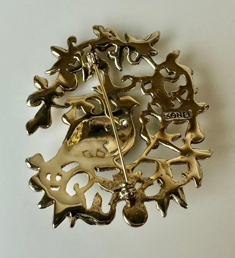 Vintage Monet Rare Partridge in a Pear Tree Brooch Pin (2.25")