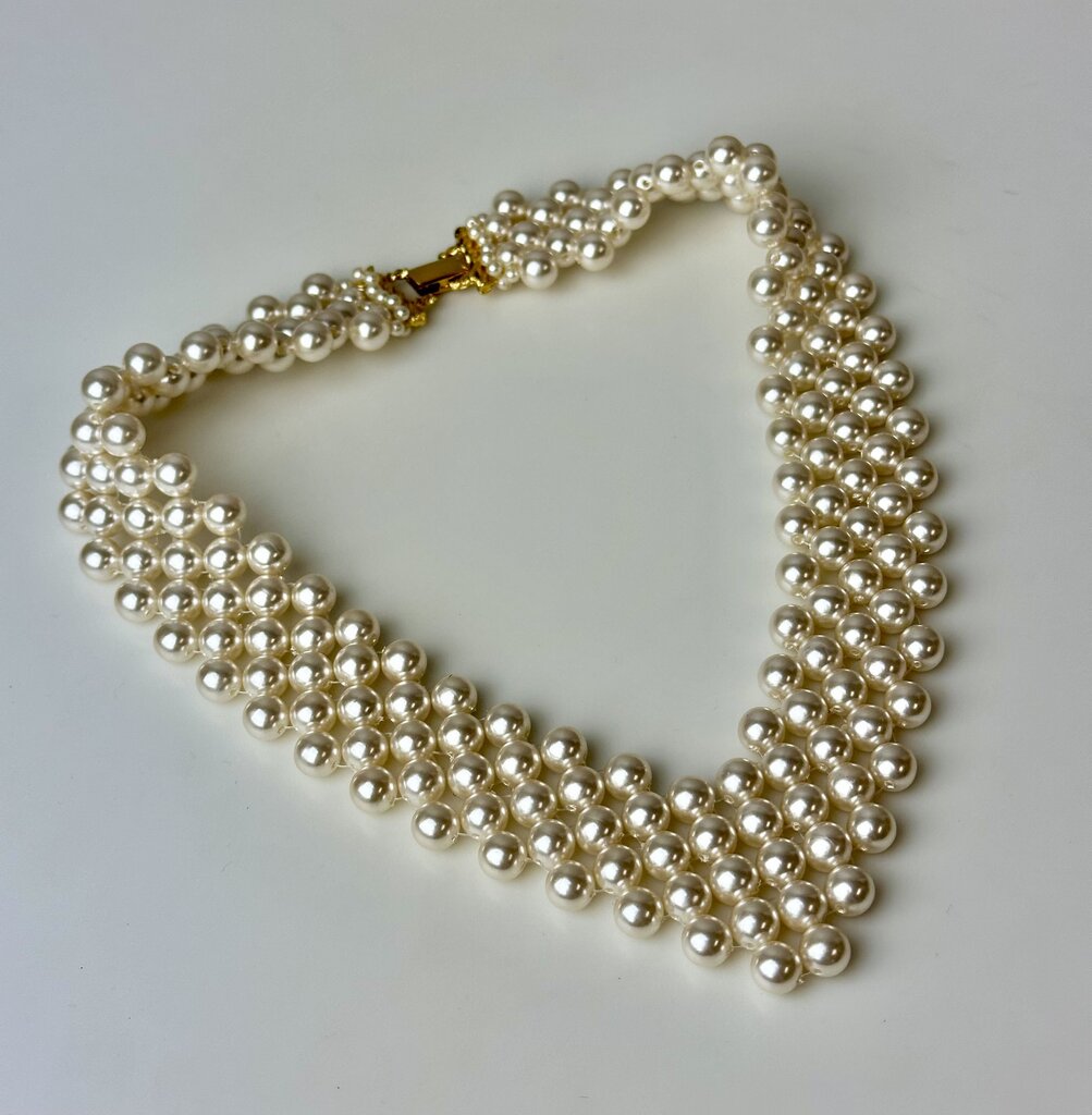 VIntage Napier Woven Faux Pearl Collar Statement Necklace 18")