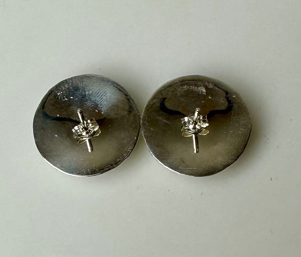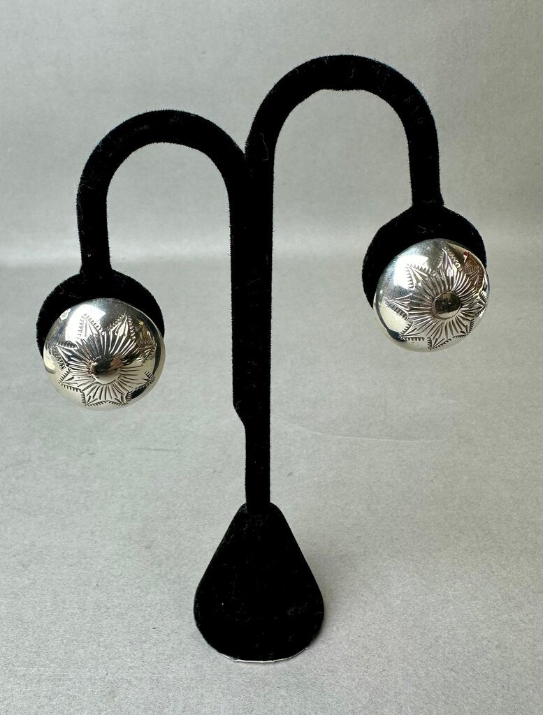 Vintage Native American Sterling Domed Concho Button 1" Stud Earrings