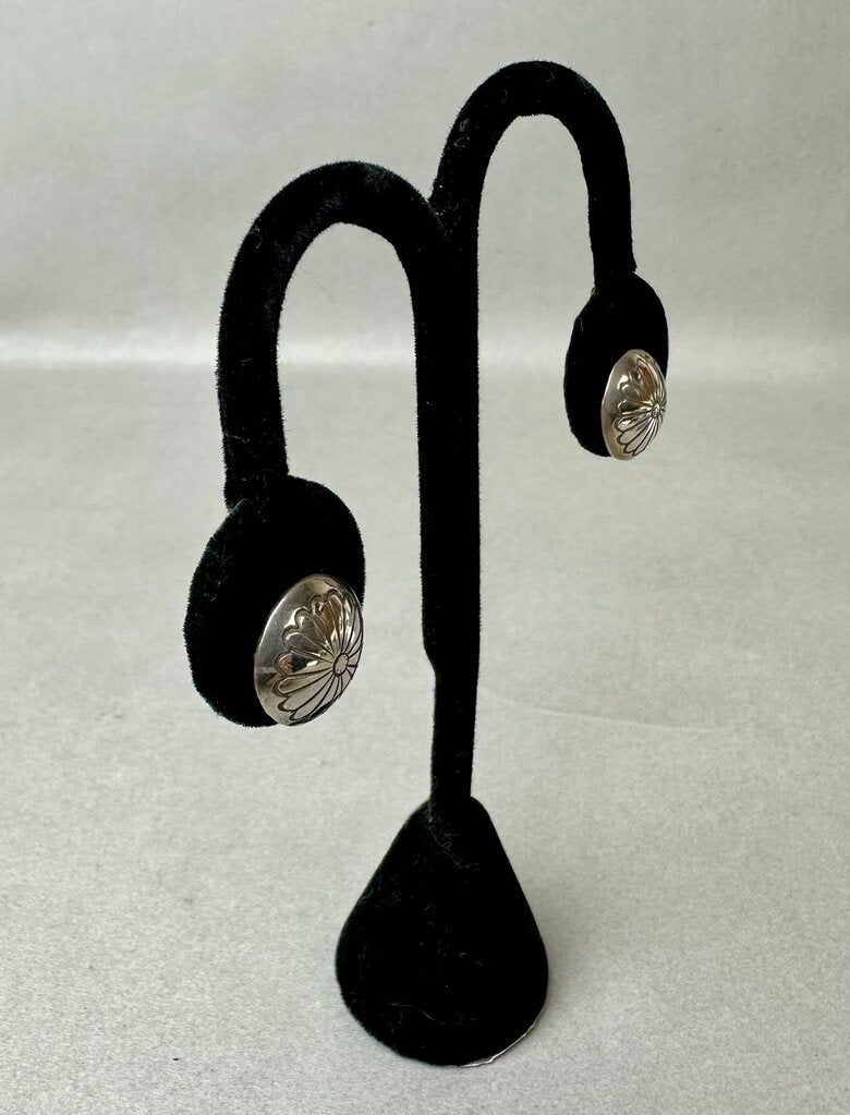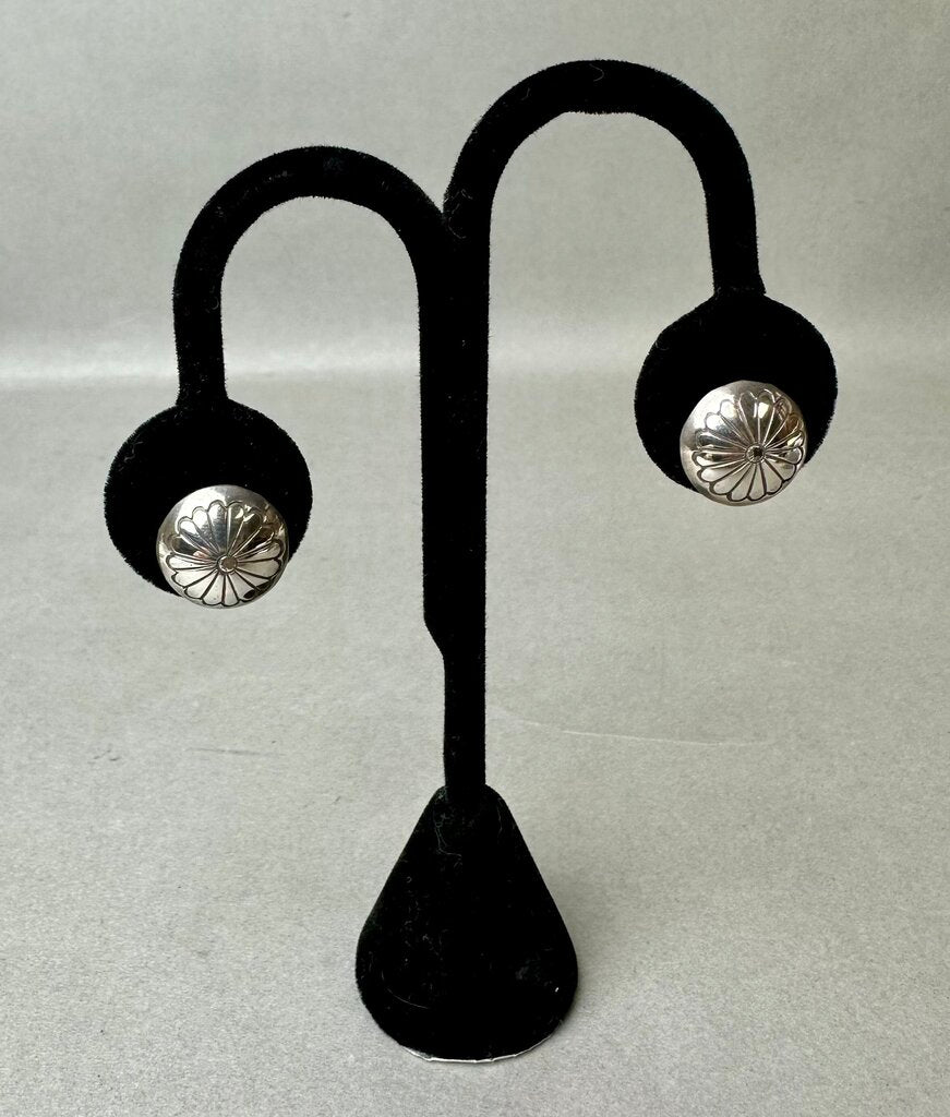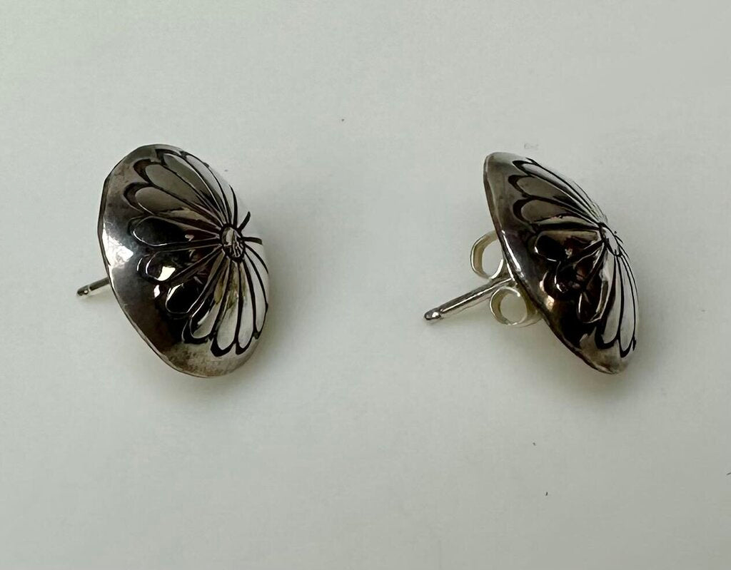 Vintage Native American Sterling Flower Concho Domed 0.5" Stud Earrings