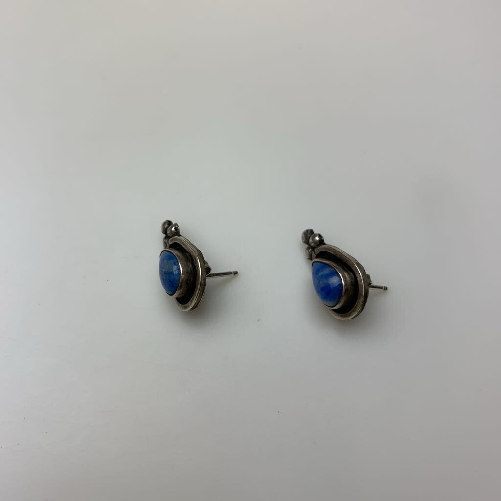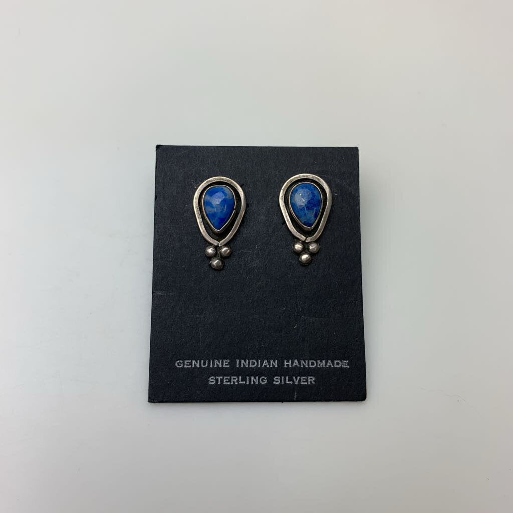 Vintage Native American Sterling Lapis Lazuli 0.75" Stud Earrings