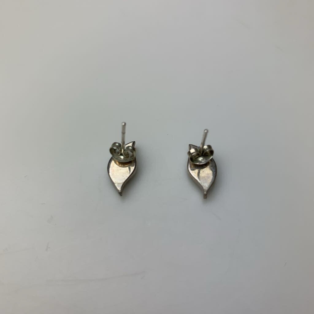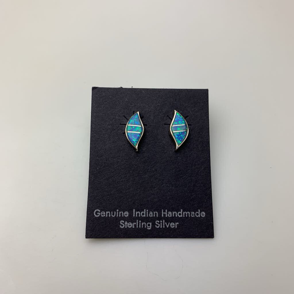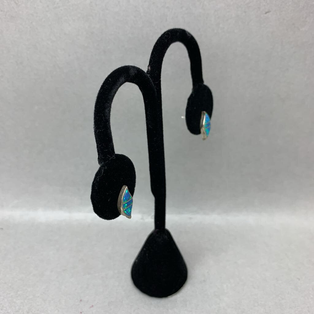 Vintage Native American Sterling Opal Inlay 0.5" Stud Earrings