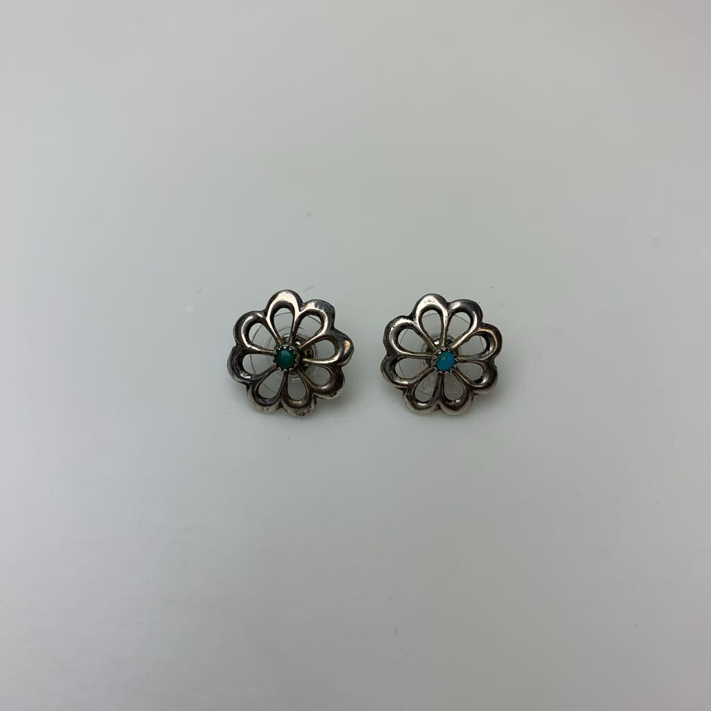 Vintage Native American Sterling Turquoise Daisy 0.5" Stud Earrings