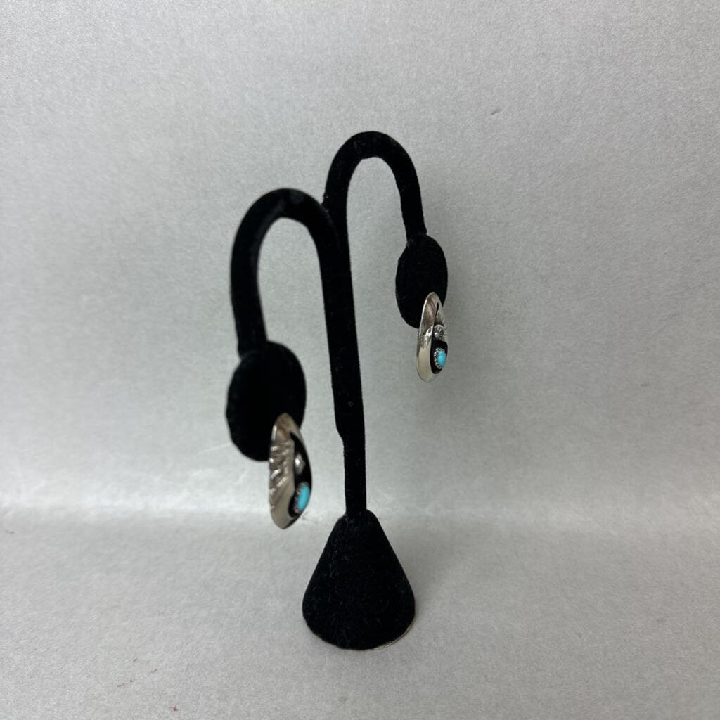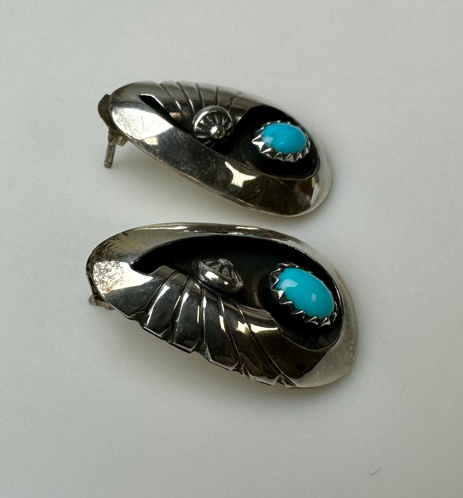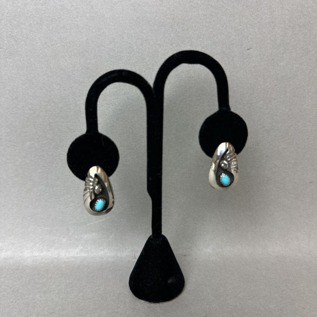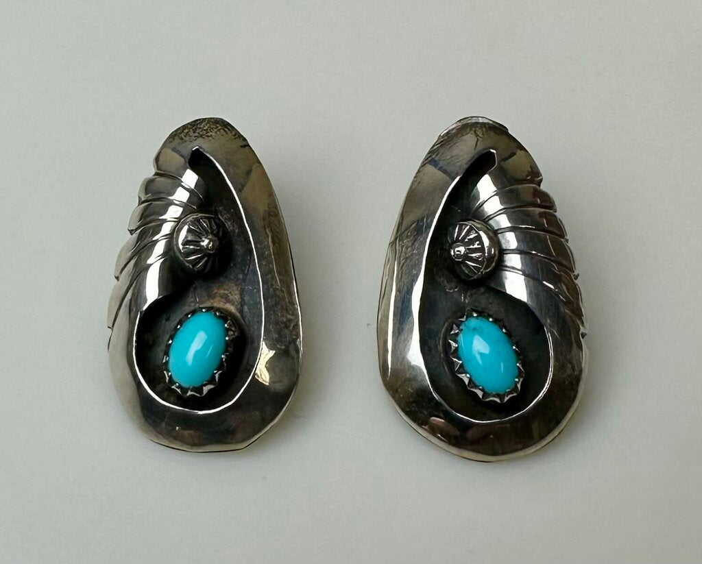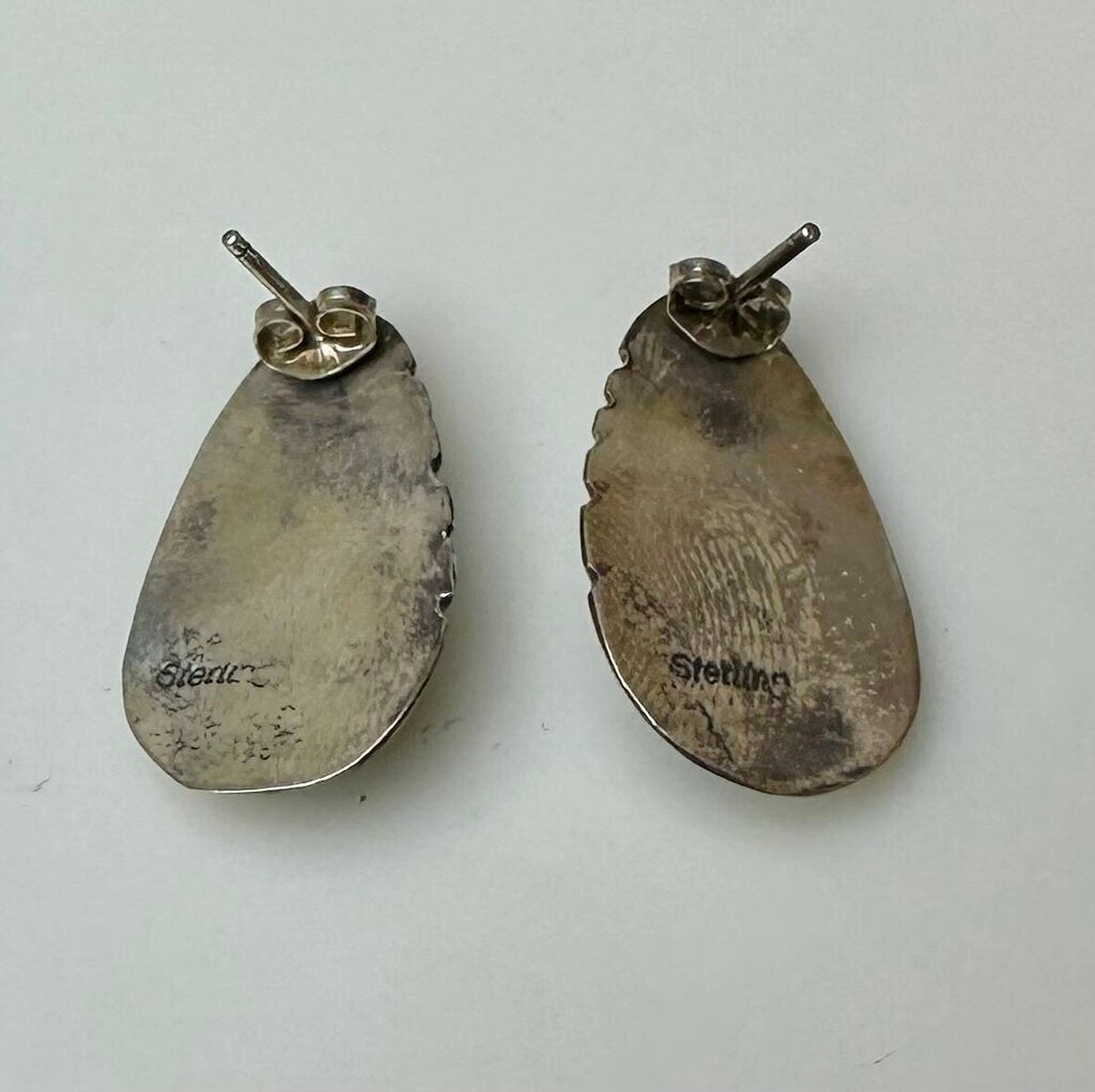 Vintage Native American Sterling Turquoise Shadow Box 1" Teardrop Stud Earrings