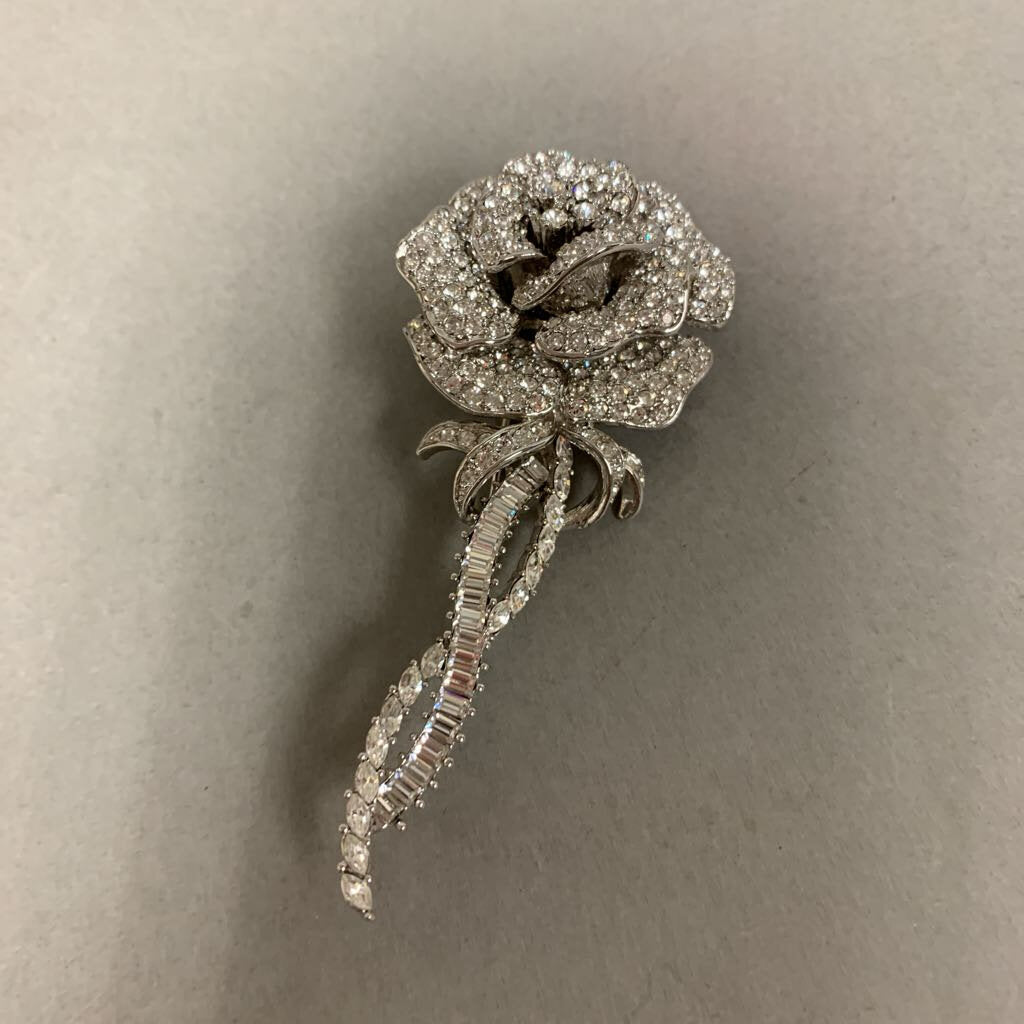 Vintage Nolan Miller Glamour Collection Rhinestone Rose Brooch Pin (3.25")