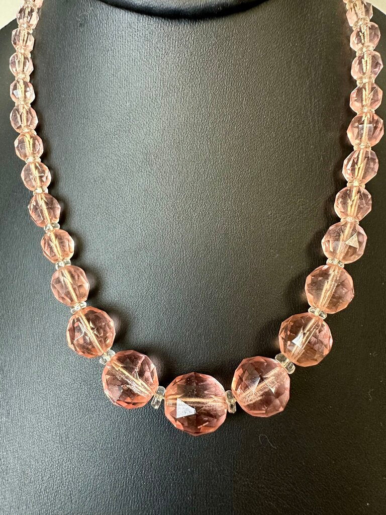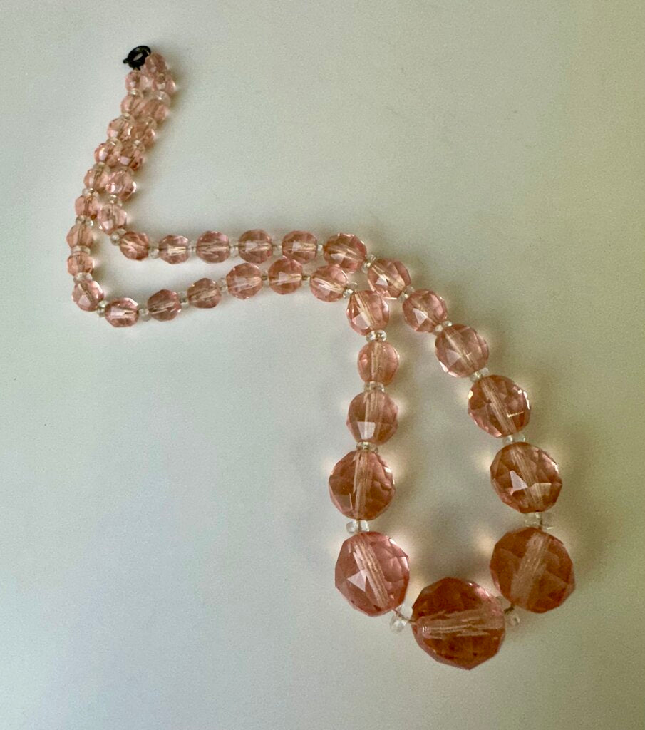 Vintage Pale Pink Faceted Glass Graduated Bead Necklace (16")