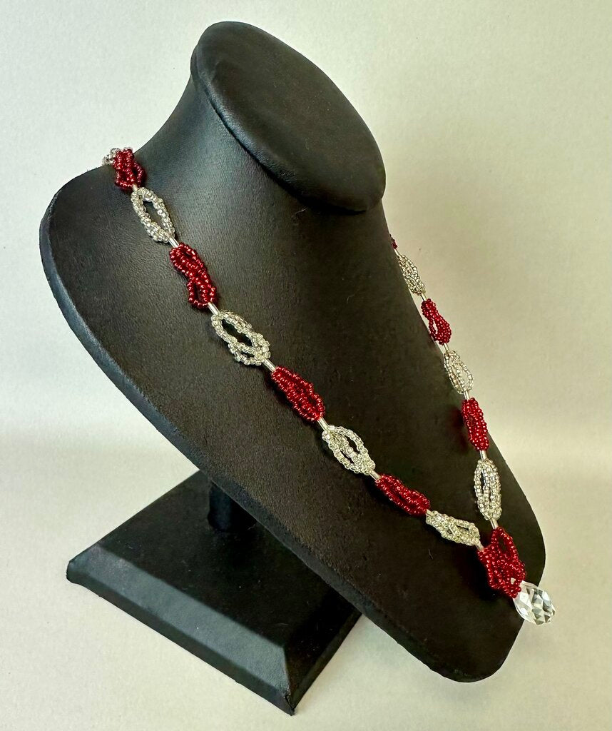 Vintage Red & Clear Layered Seed Bead Crystal Drop Necklace (25")