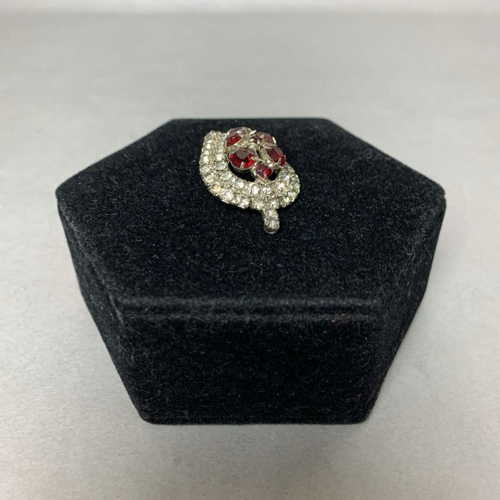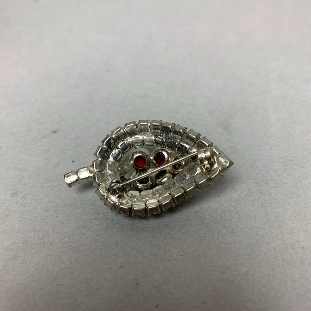 Vintage Ruby Red Clear Rhinestone Leaf Brooch Pin (1.75")