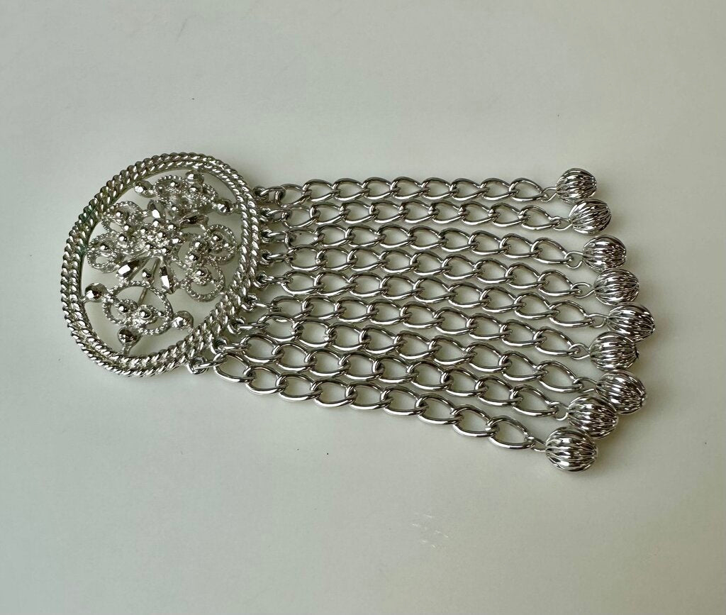 Vintage Sarah Cov Silvertone Chain Waterfall Brooch Pin (4")