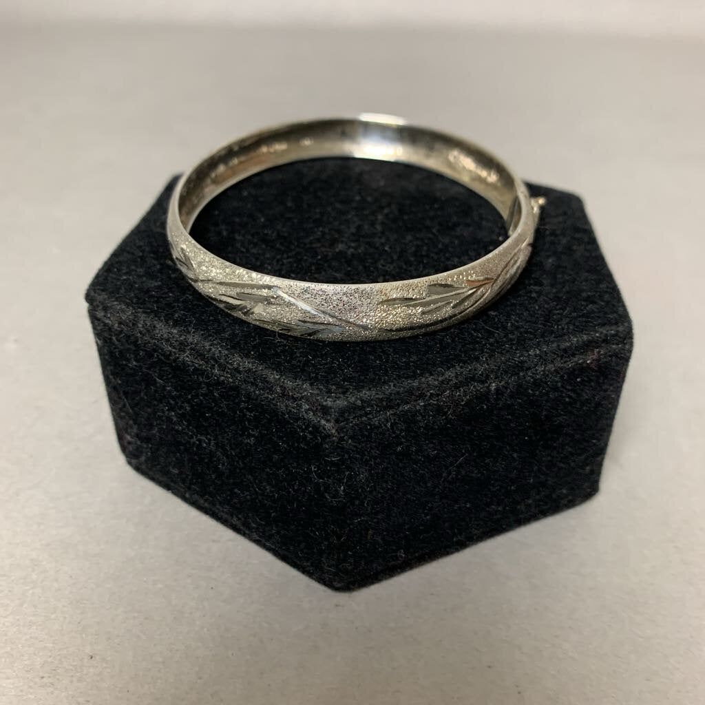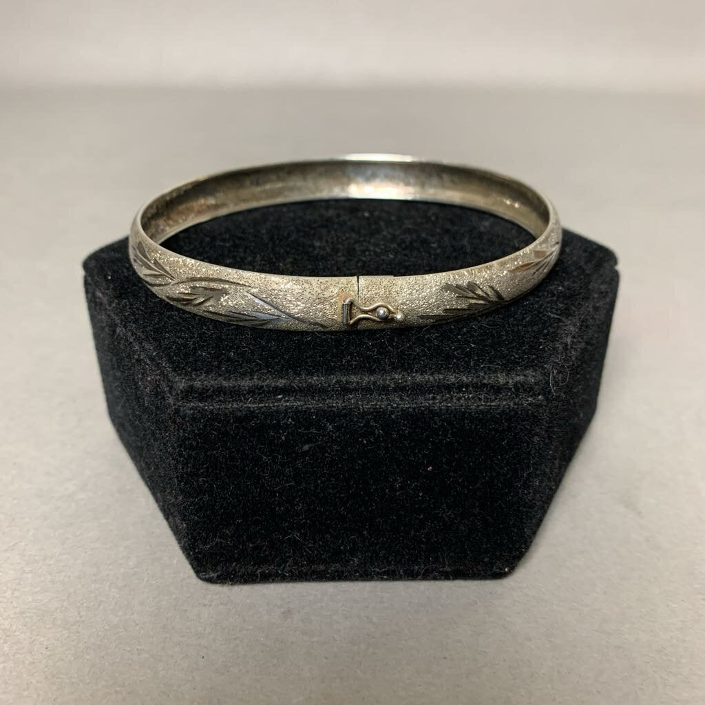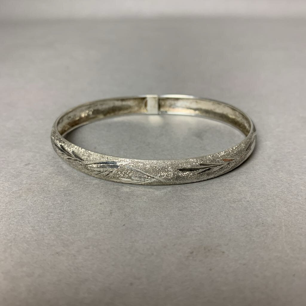 Vintage Sterling Etched Textured Flexible Bangle Bracelet Signed HAN (7.75")