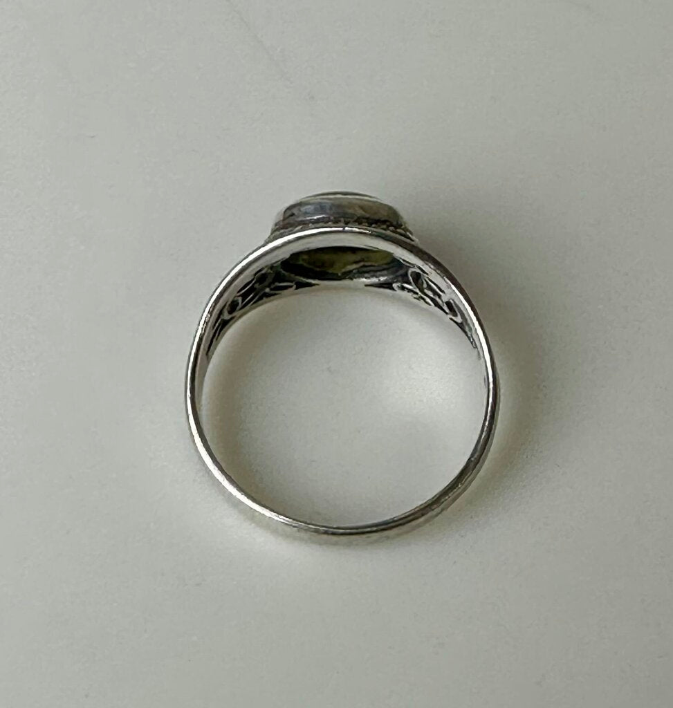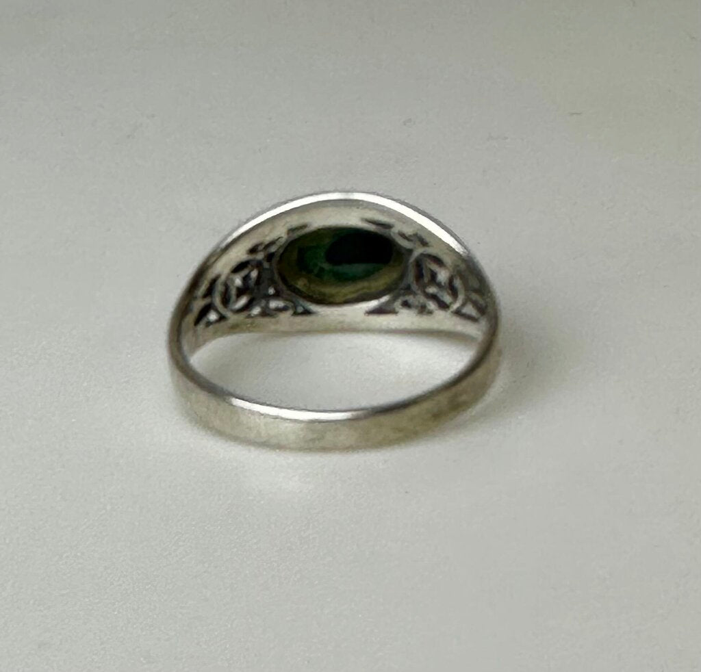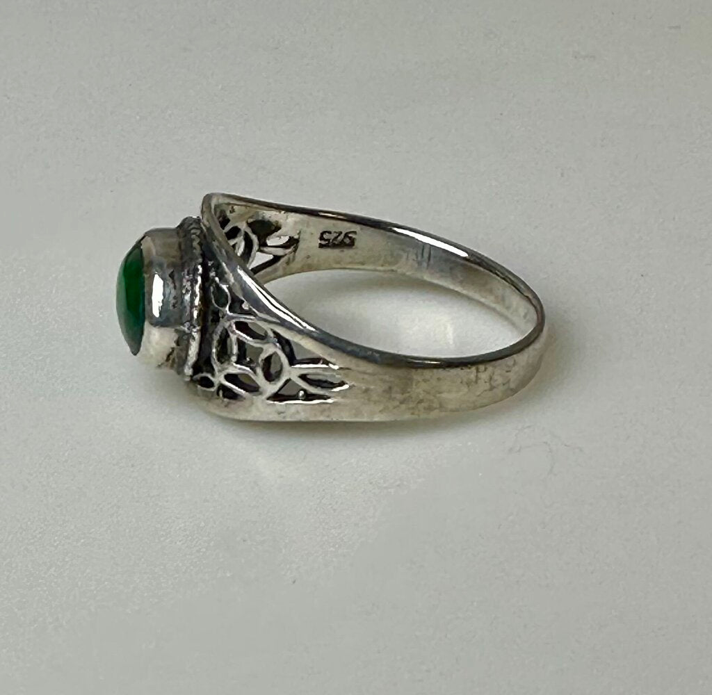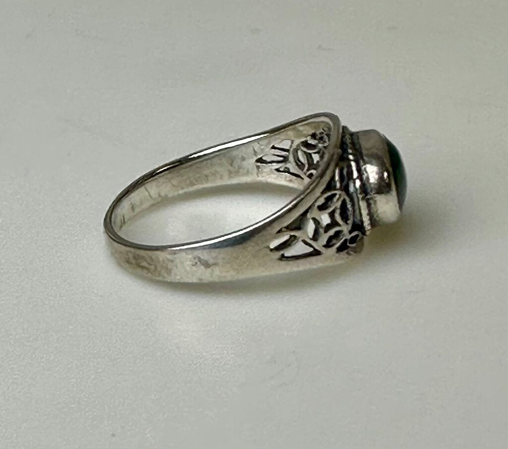 Vintage Sterling Filigree Malachite Ring sz 5.5