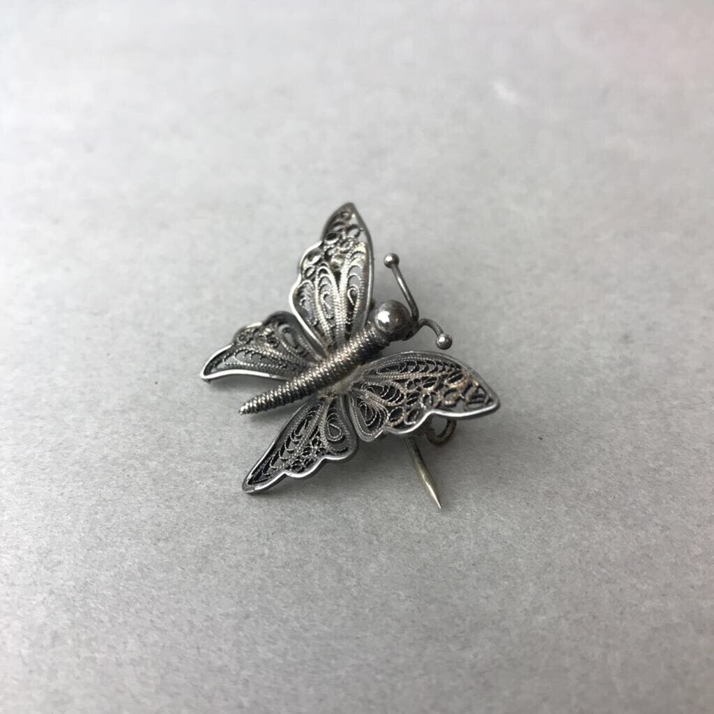 Vintage Sterling Filligree Butterfly Brooch Pin (1.5")