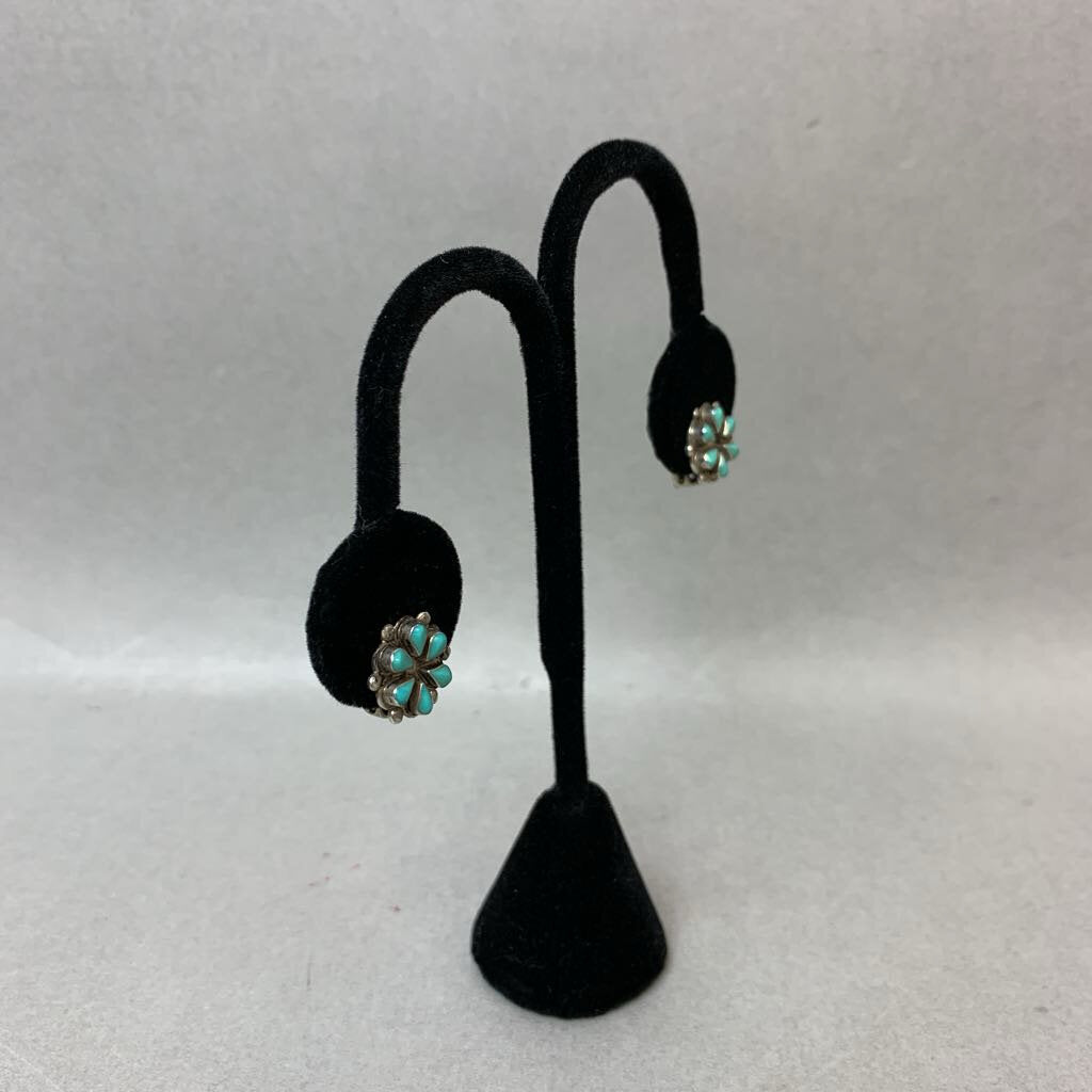Vintage Sterling Flower Cluster Clip Earrings (0.5")