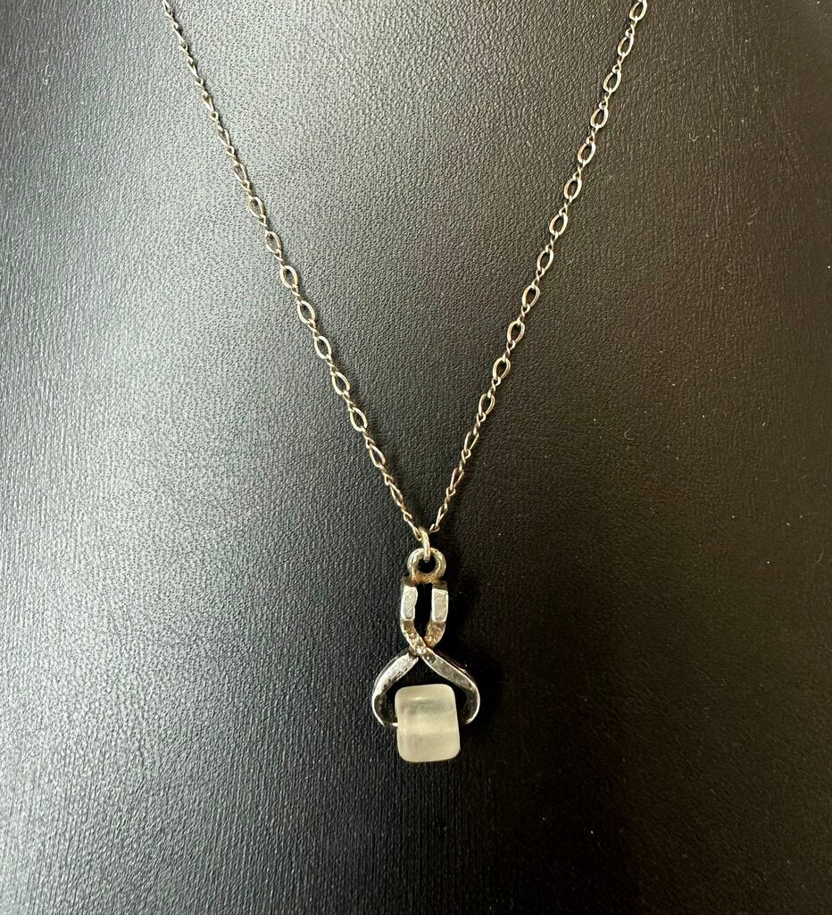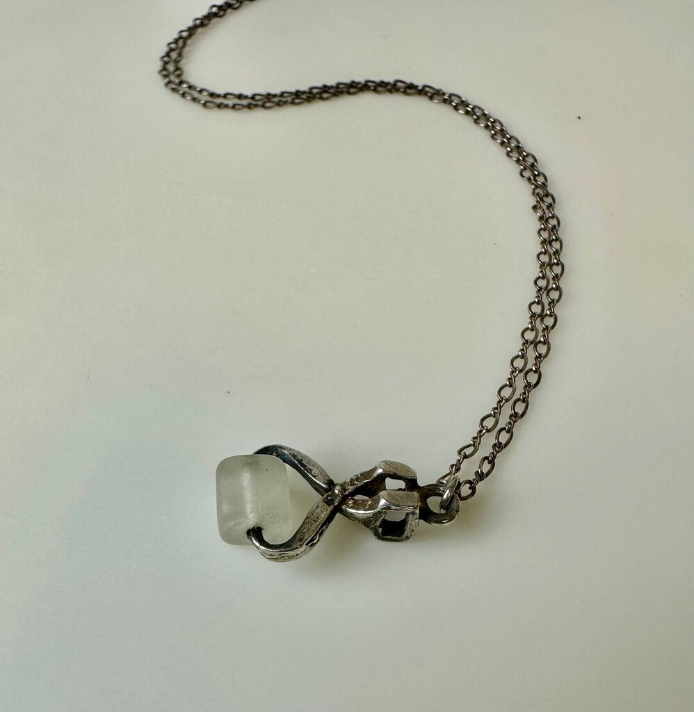 Vintage Sterling Lucite Ice Cube in Tongs Pendant on 16" Chain