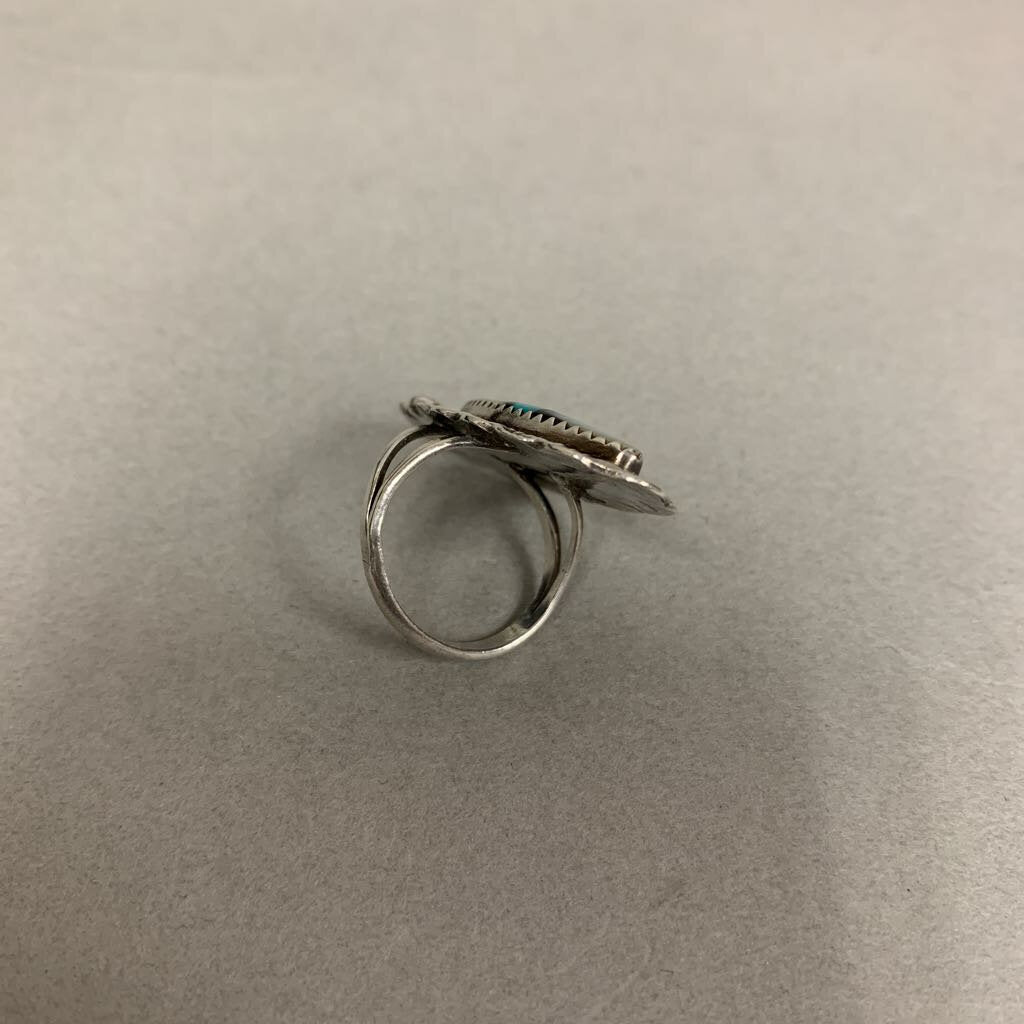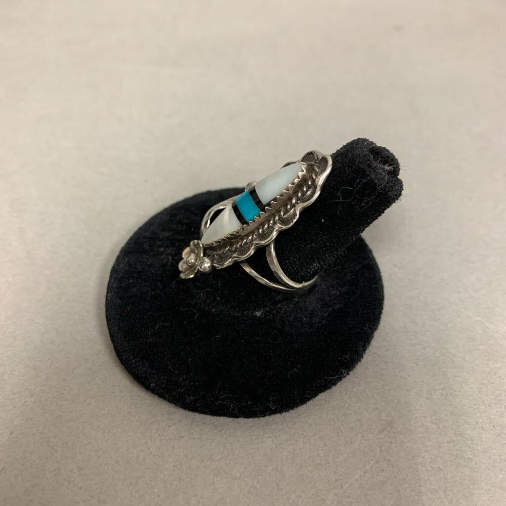 Vintage Sterling Mother of Pearl Turquoise Onyx Inlay Ring sz 5